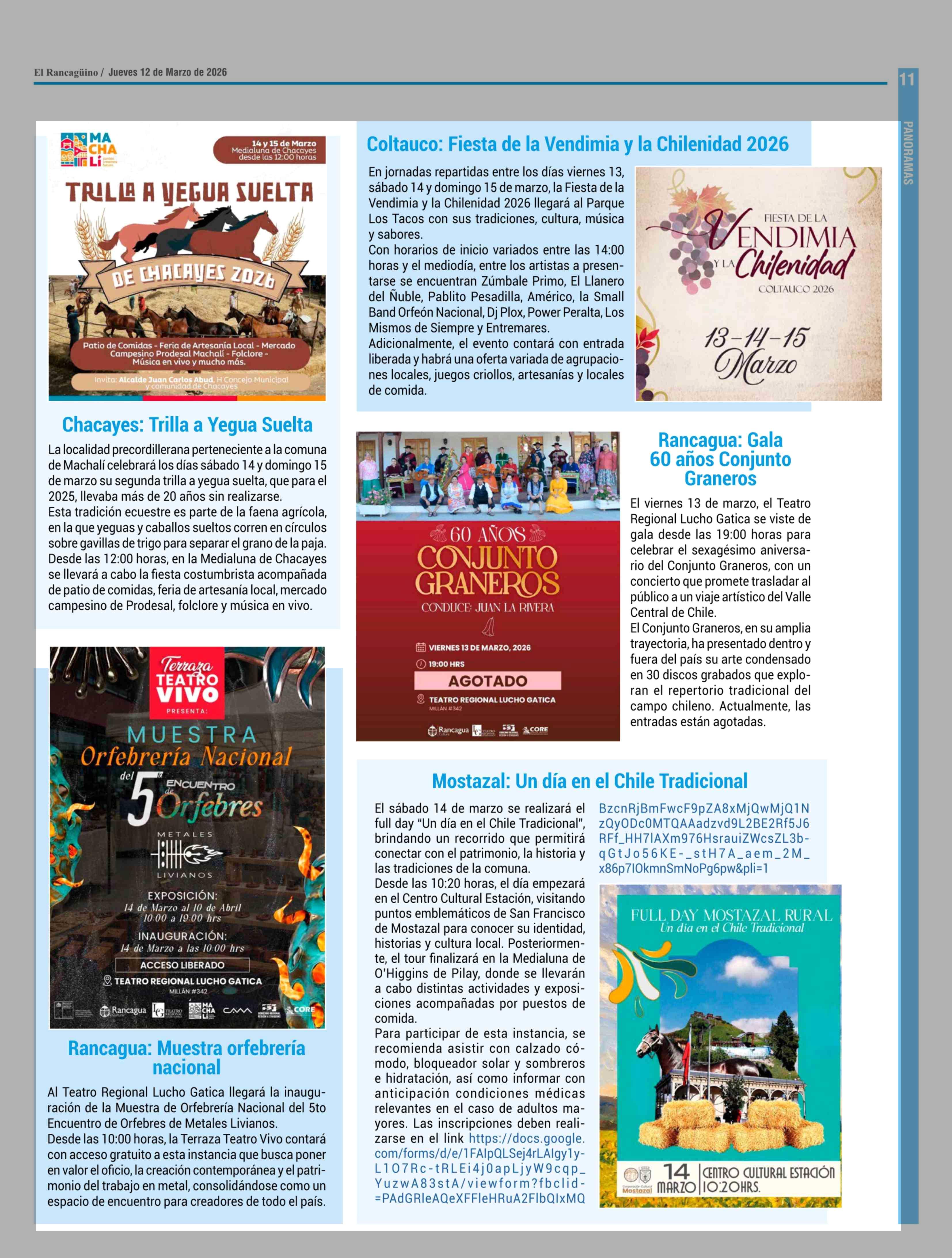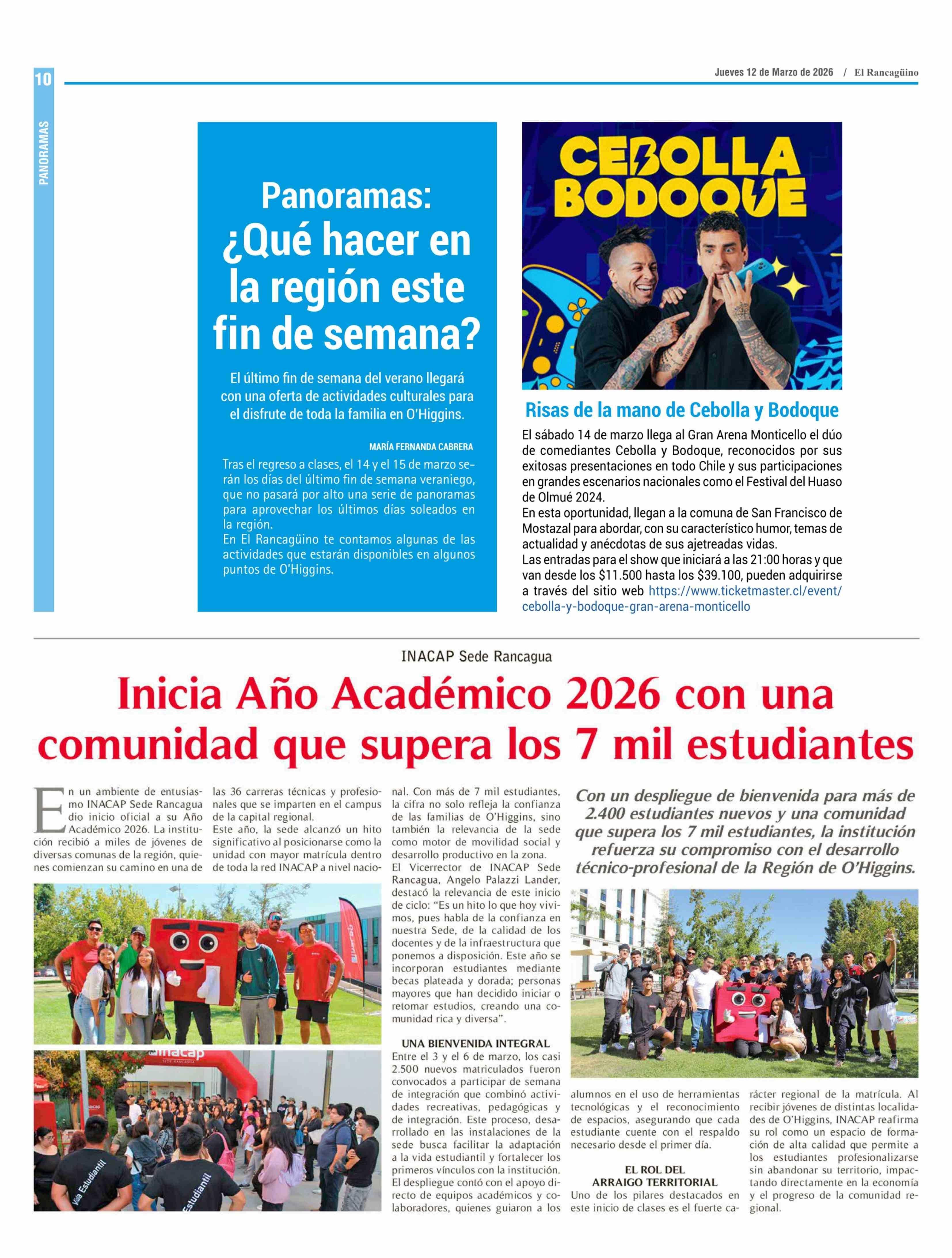 ¿Qué hacer en la región este fin de semana? 12-03-2026 El Rancagüino |