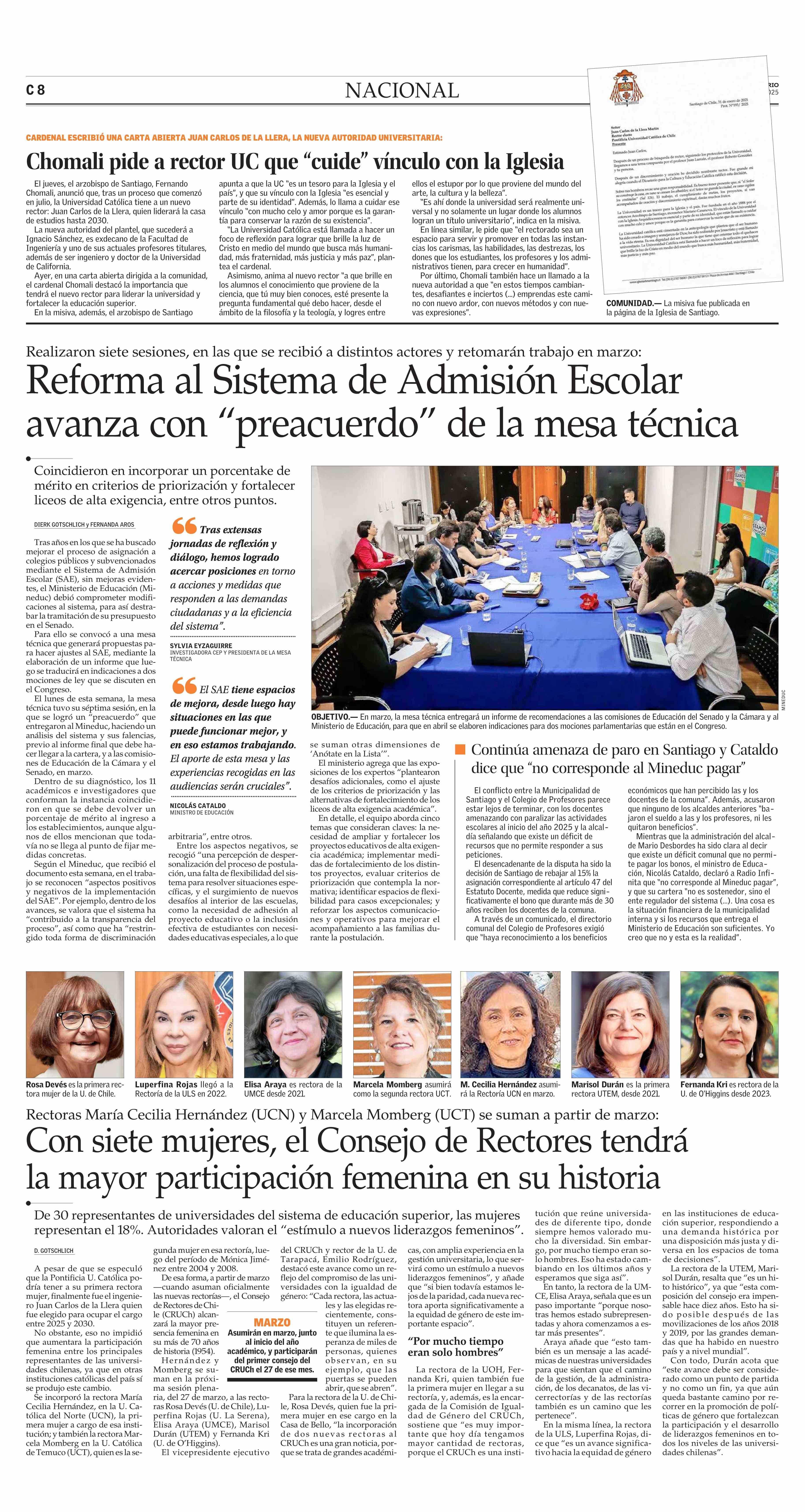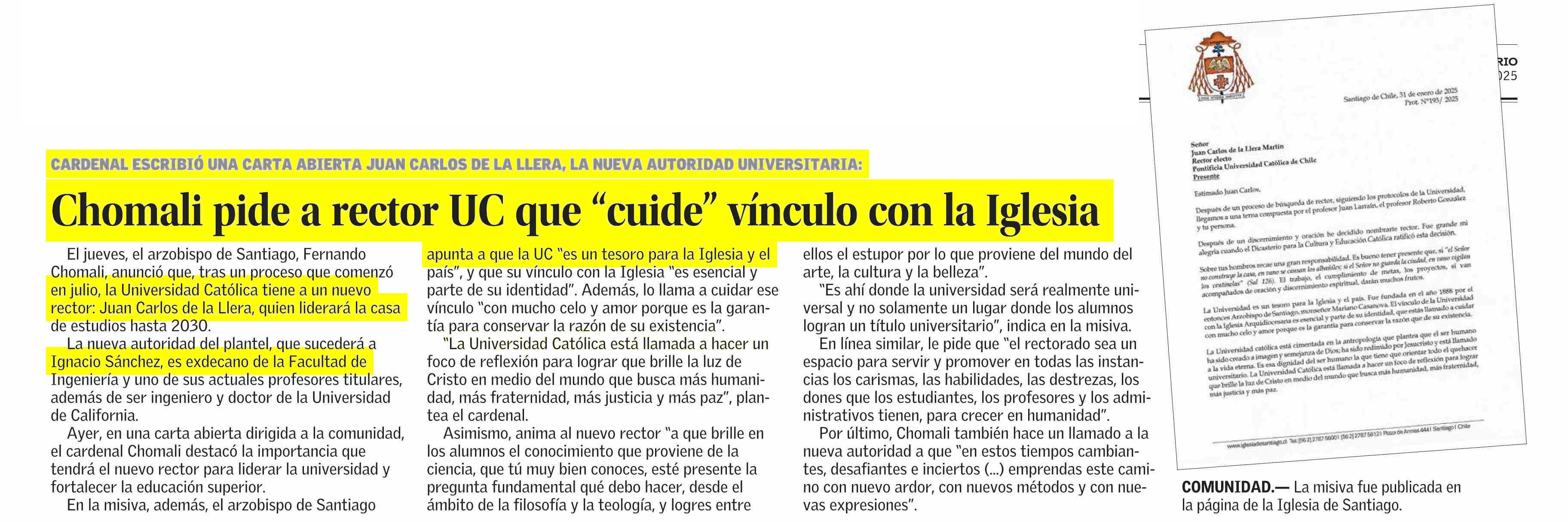 Chomali pide a rector UC que "cuide" vínculo con la Iglesia 01-02-2025 El Mercurio |