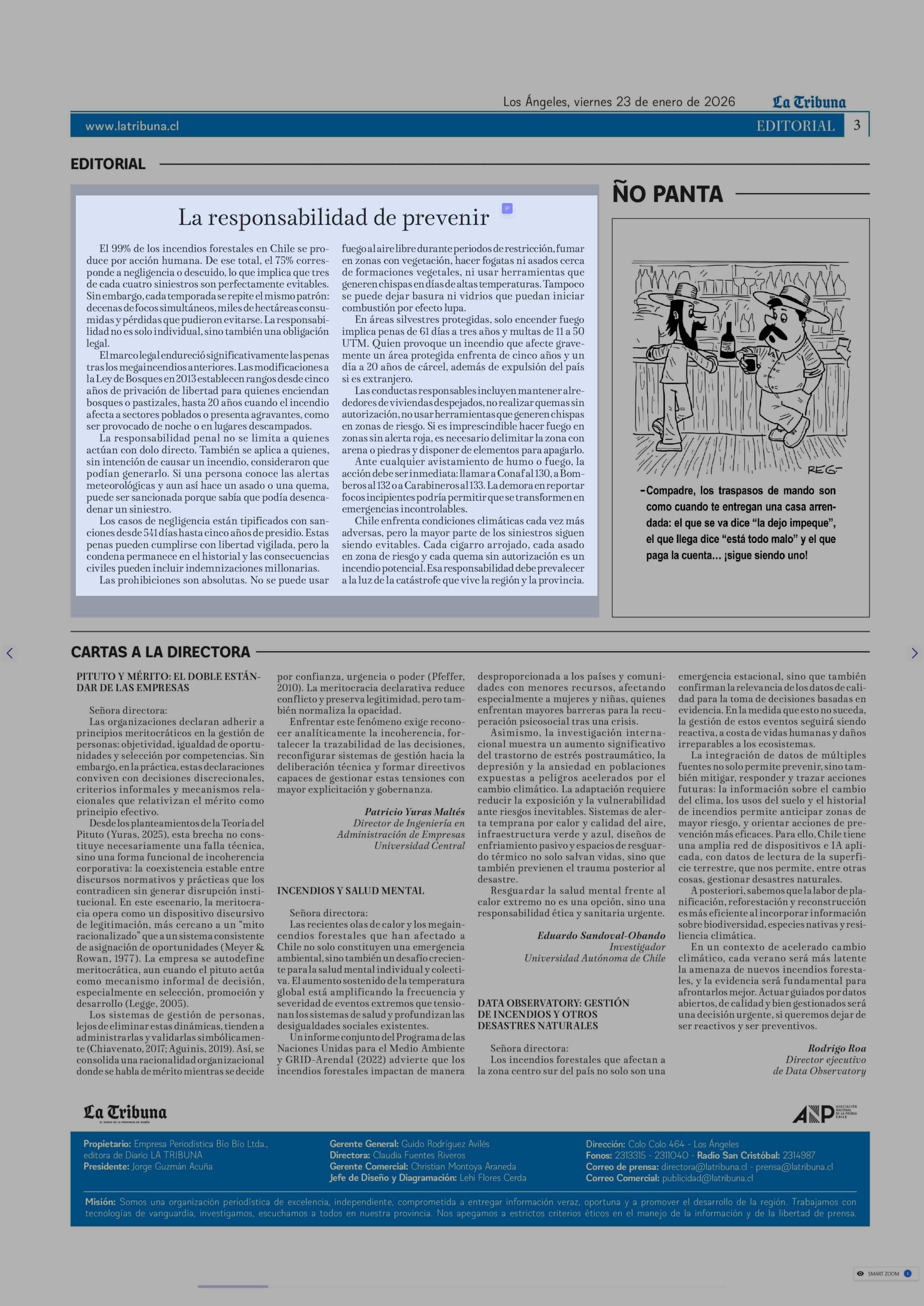 Editorial: La responsabilidad de prevenir 23-01-2026 La Tribuna |
