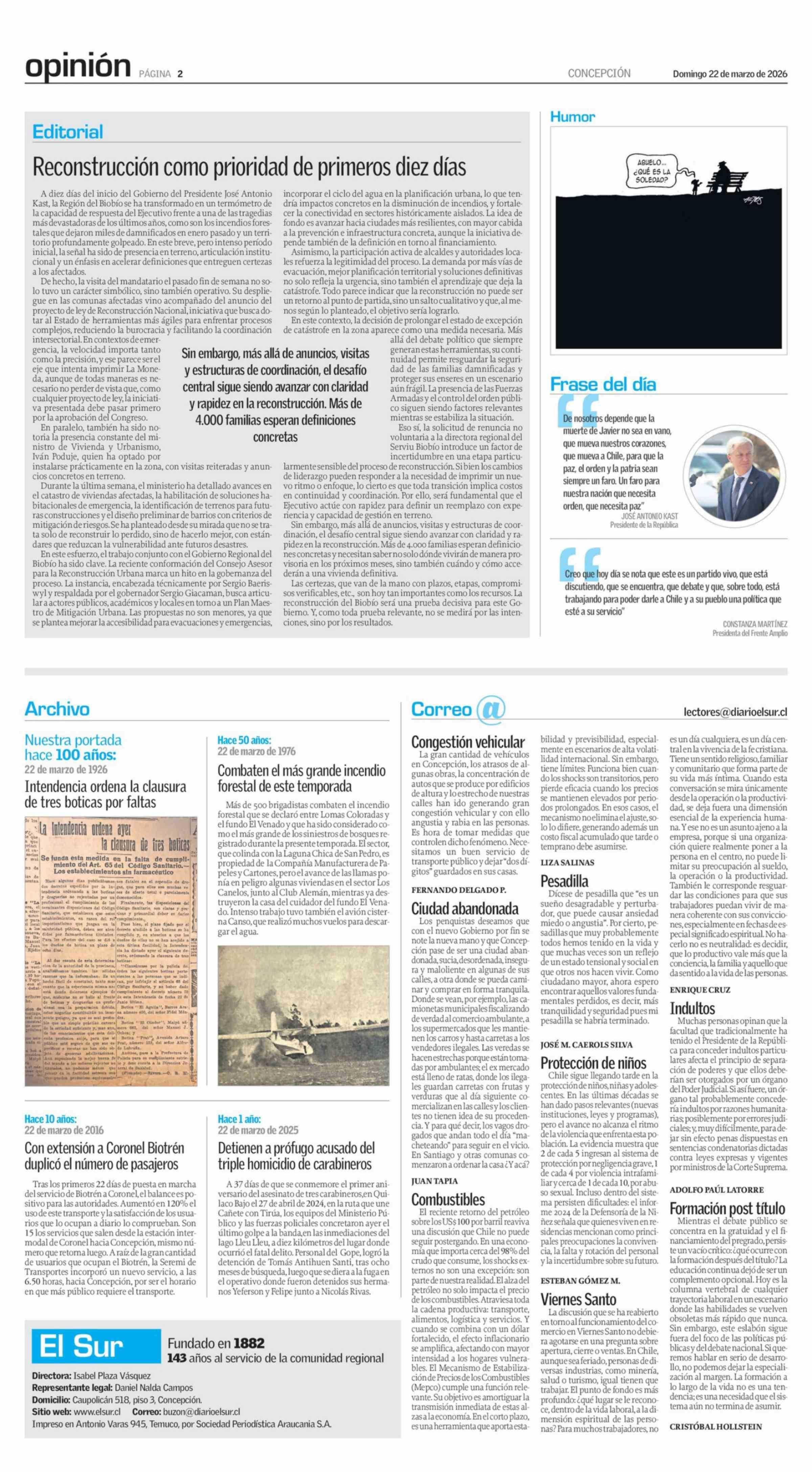 Fecha: 22-03-2026 Sector: Editorial Región: Región del Bío-Bío