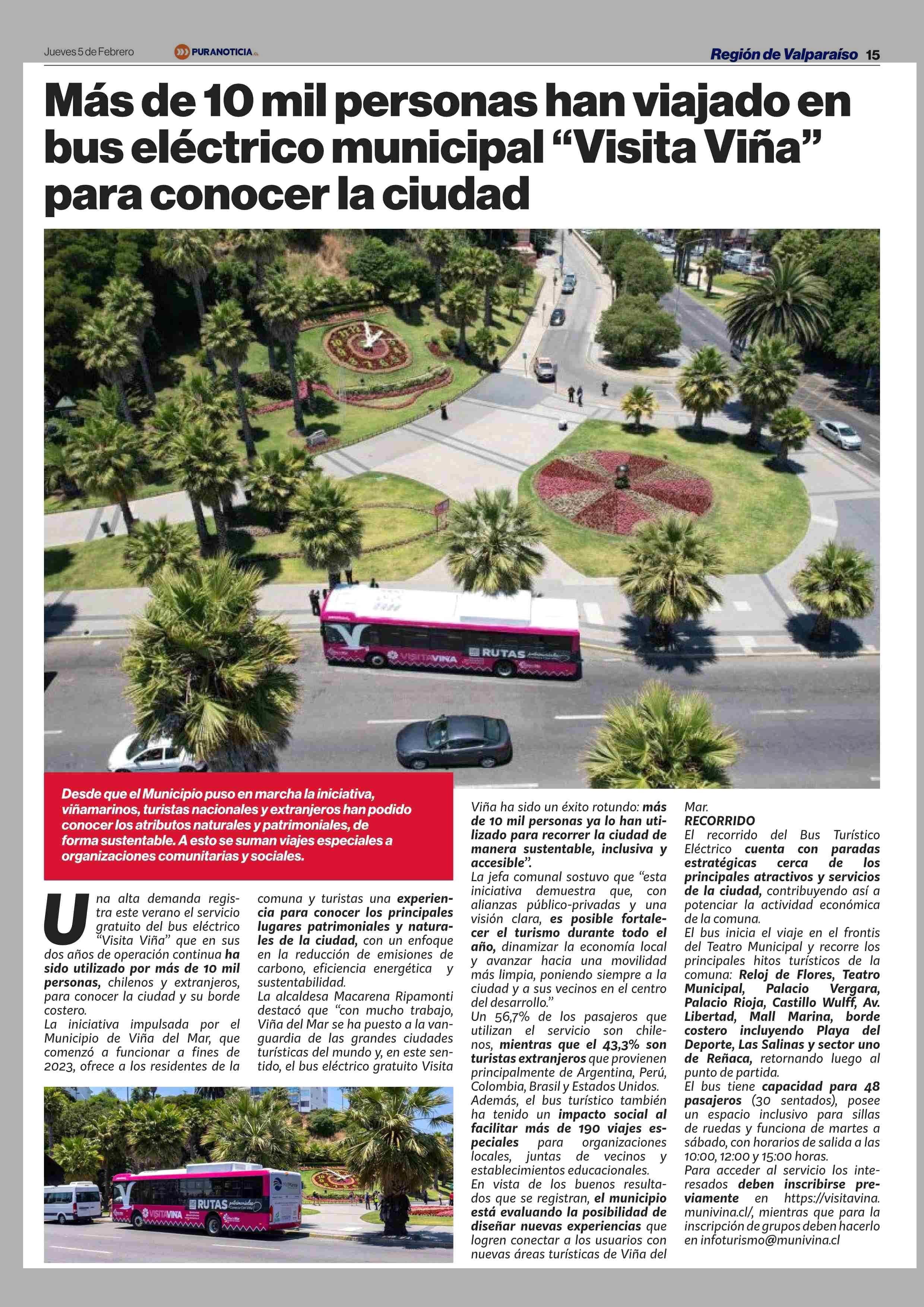 Título: Más de 10 mii personas han viajado en bus eléctrico municipal “Visita Viña” para conocer la ciudad