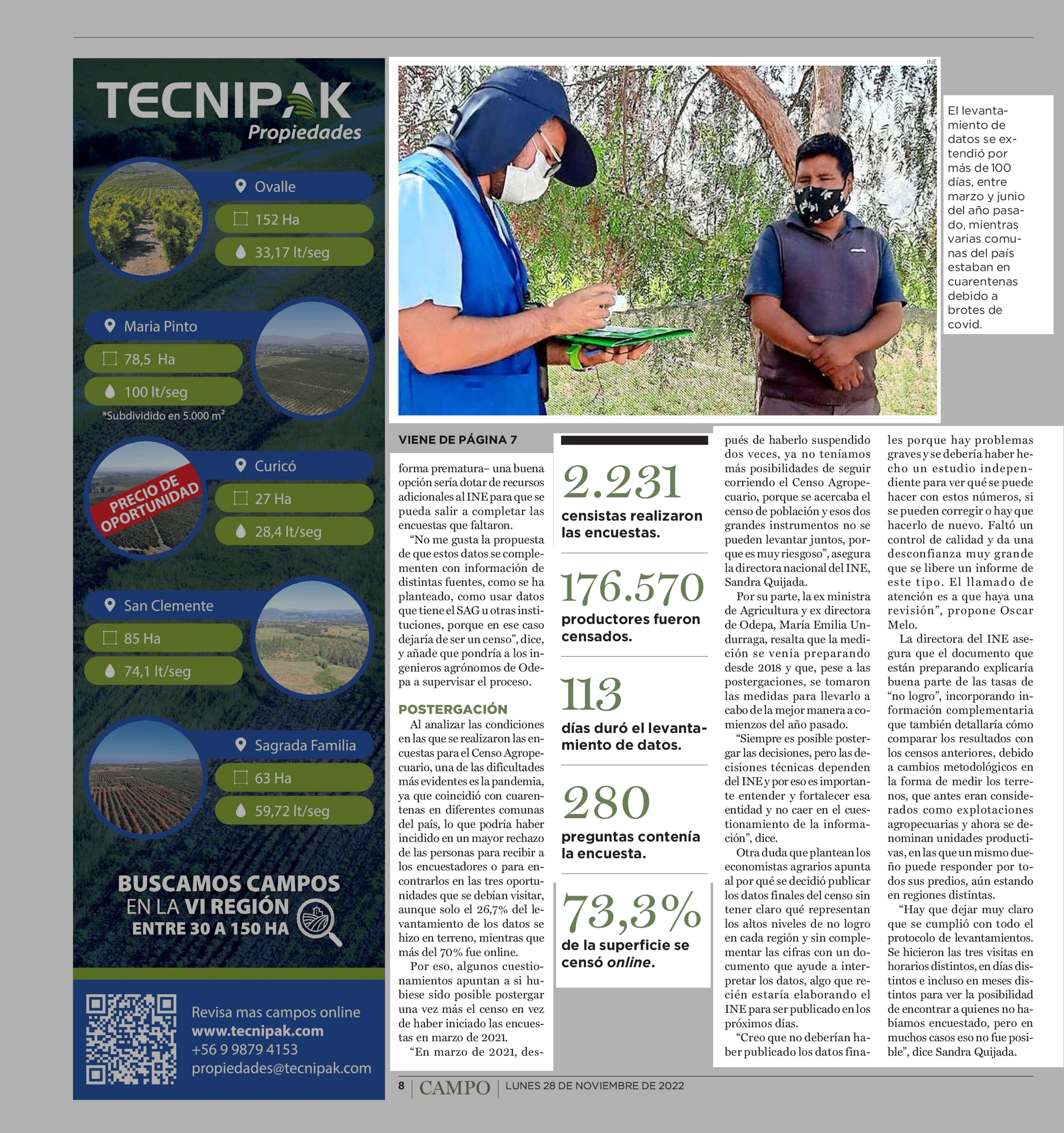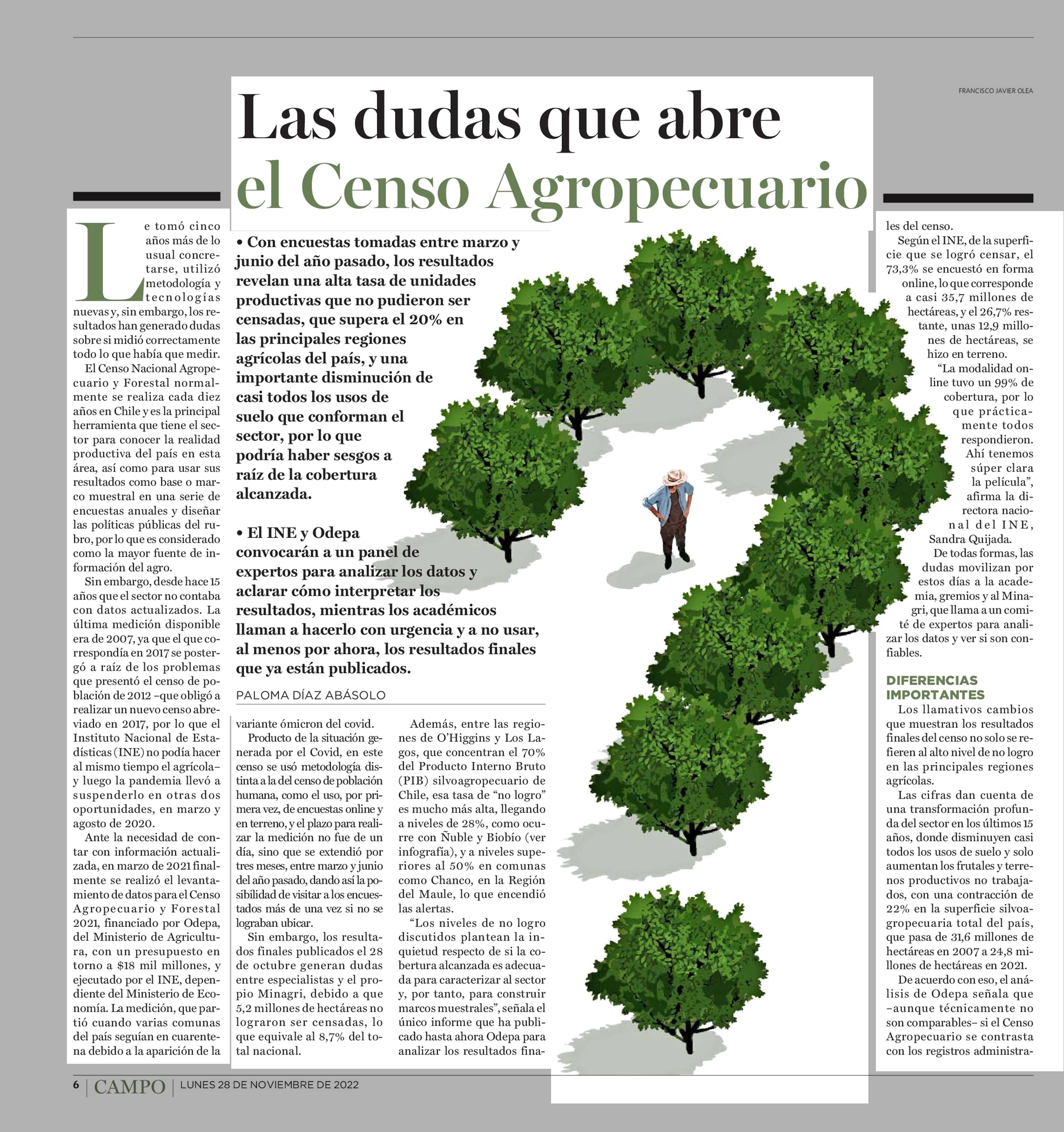 Las dudas que abre el Censo Agropecuario 28-11-2022 El Mercurio |
