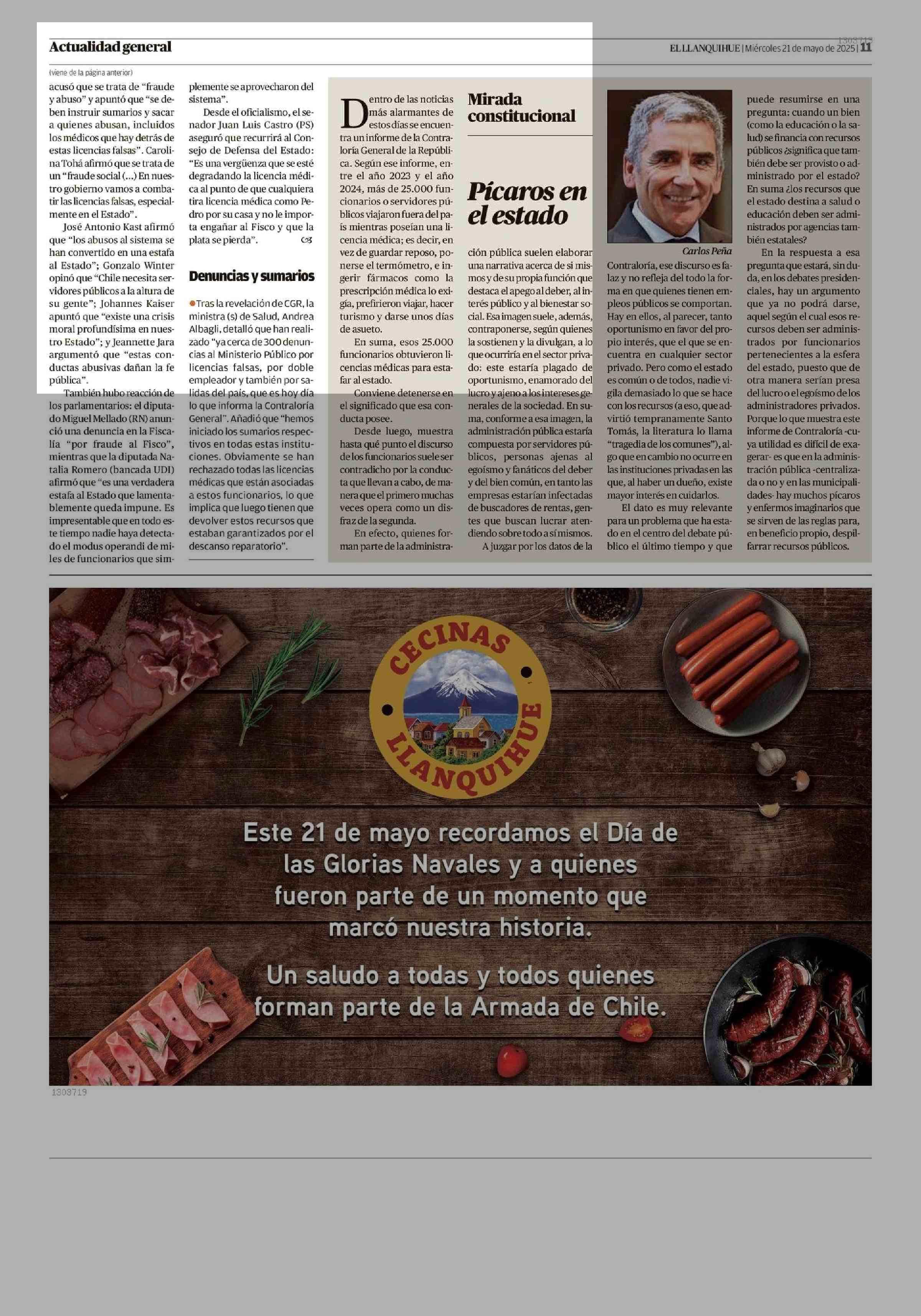 Contraloría revela que más de 25.000 funcionarios salieron del país estando con licencia 21-05-2025 El Llanquihue |