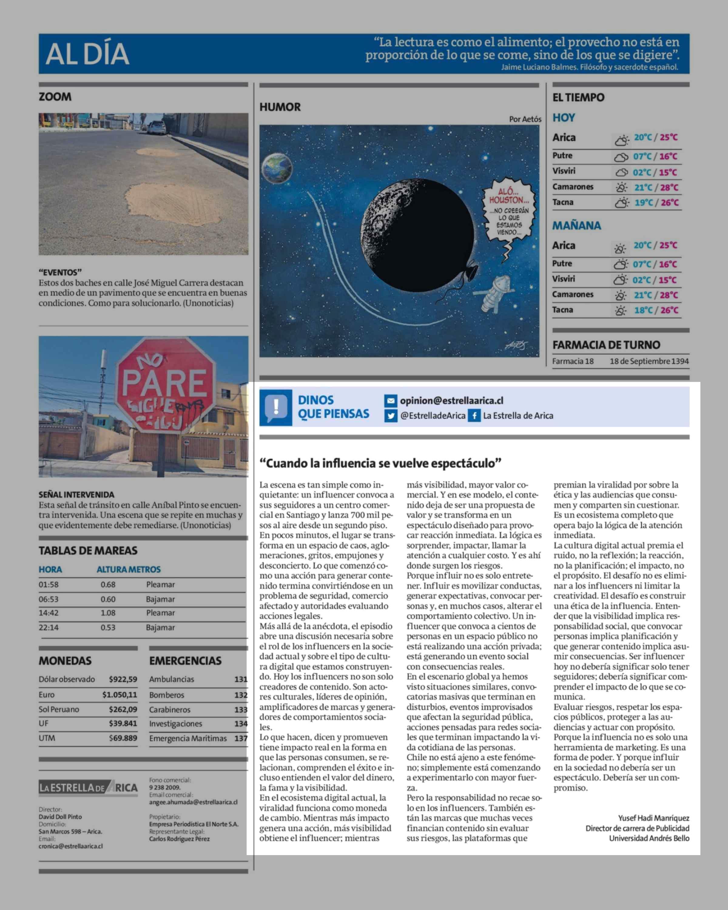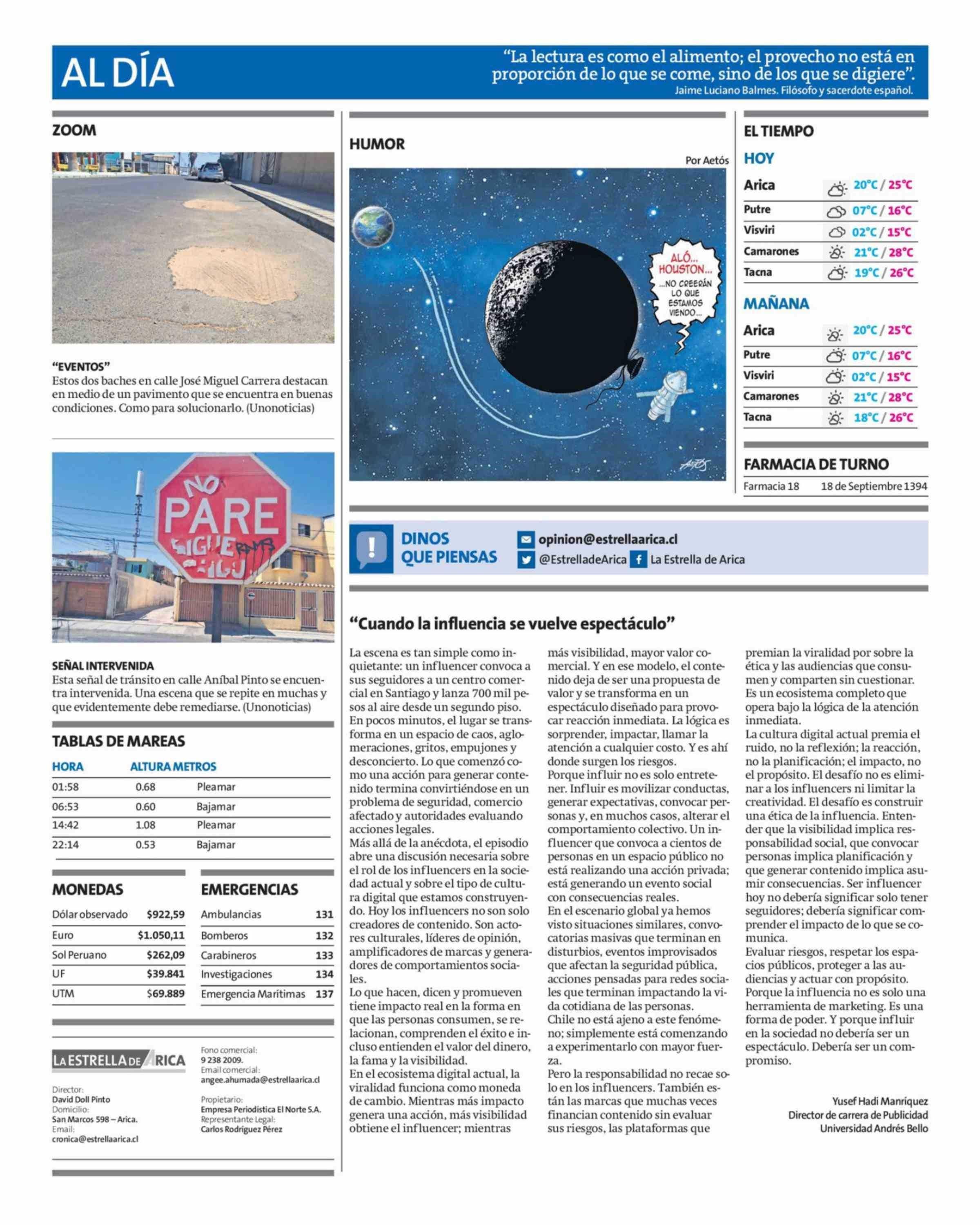 Fuente: La Estrella de Arica (La Estrella de Arica) Página(s): 6