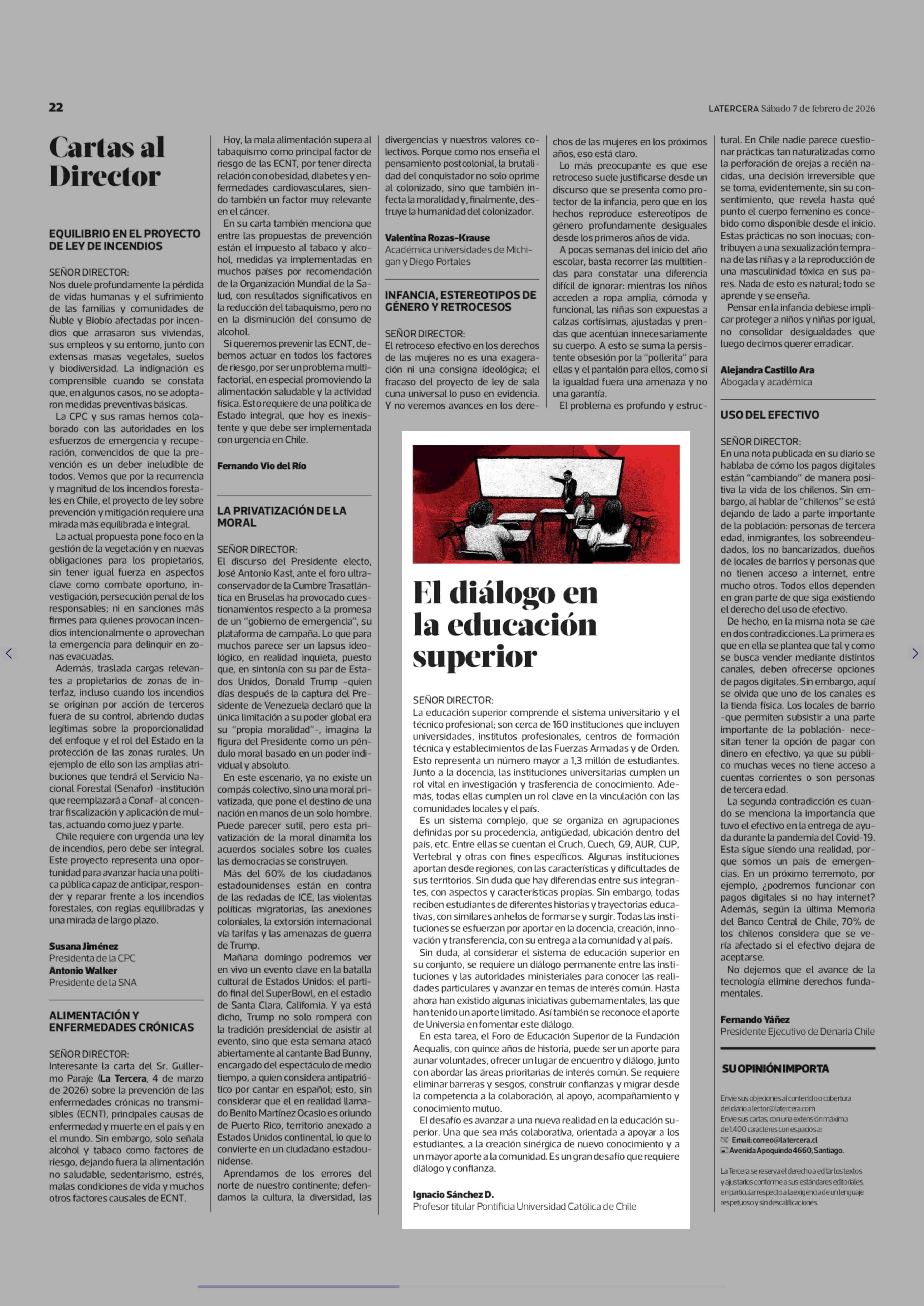 Cartas: El diálogo en la educación superior 07-02-2026 La Tercera |