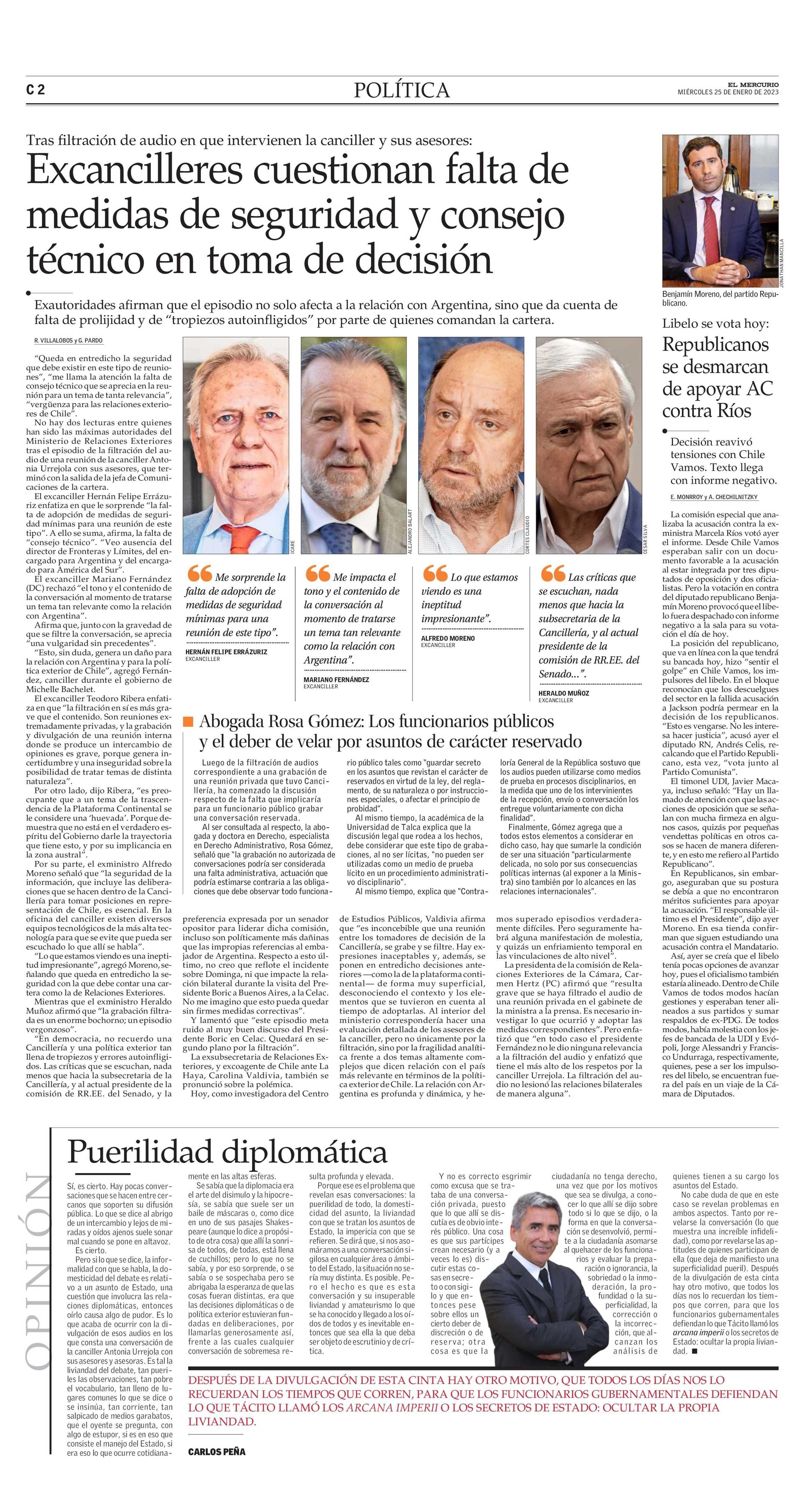 Excancilleres cuestionan falta de medidas de seguridad y consejo técnico en toma de decisión 25-01-2023 El Mercurio |