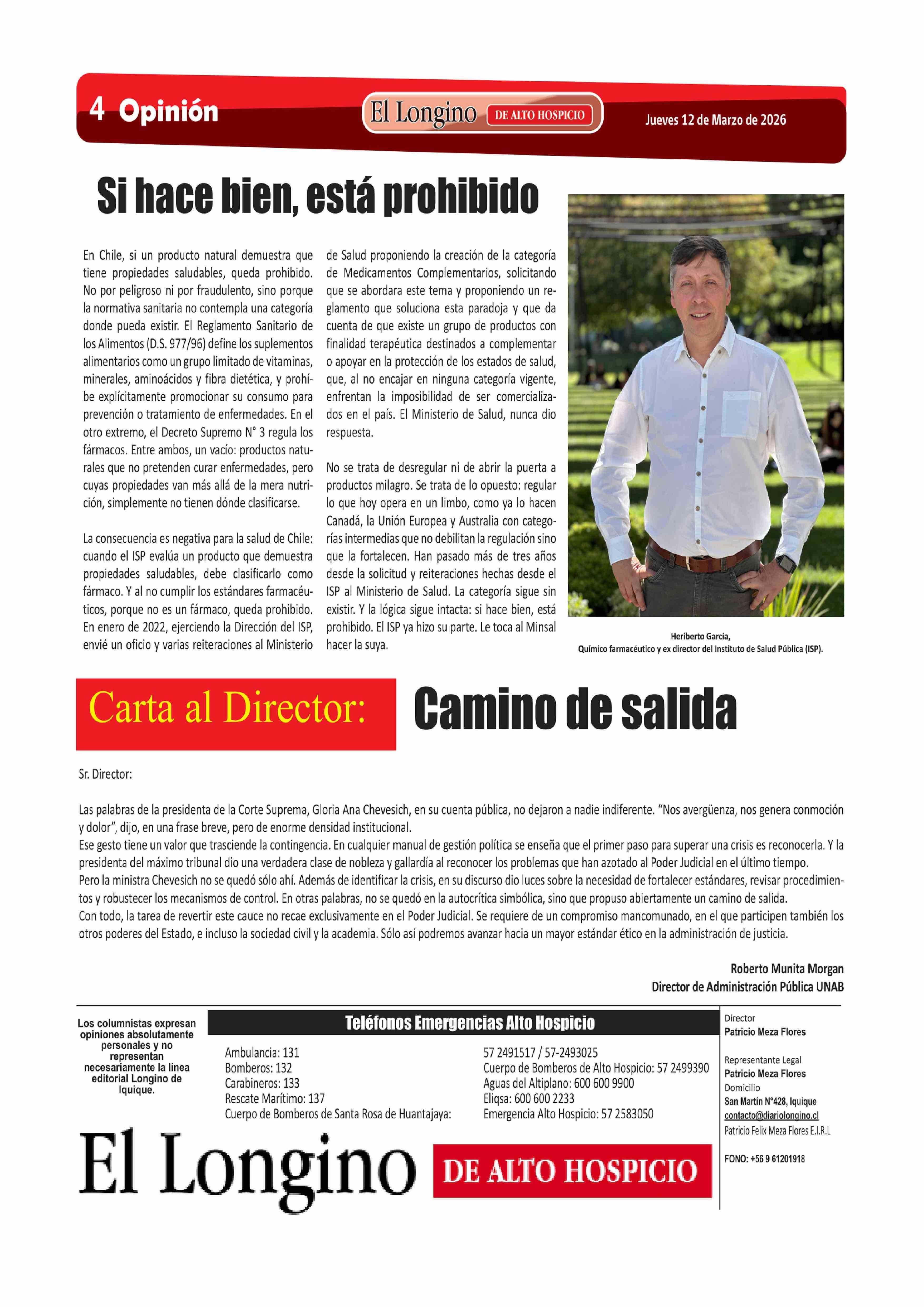 | Fecha: | 12-03-2026 | Sector: | Columnas de Opinión | Región: | Región de Tarapacá |