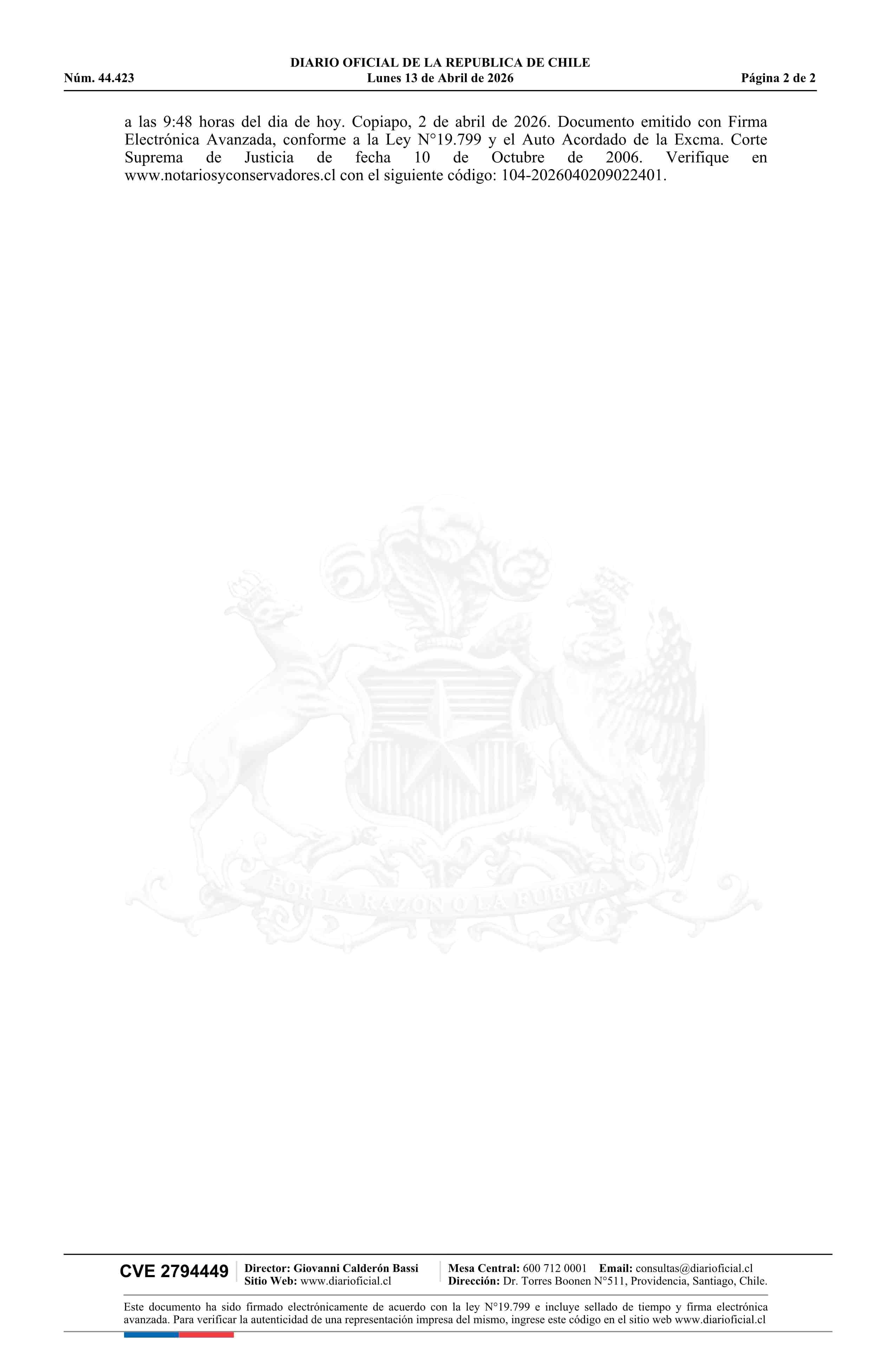 YEGUAS HELADAS 30 1 AL 30 / SCM Carola 13-04-2026 DIARIO OFICIAL CHILE - BOLETÍN OFICIAL DE MINERÍA |