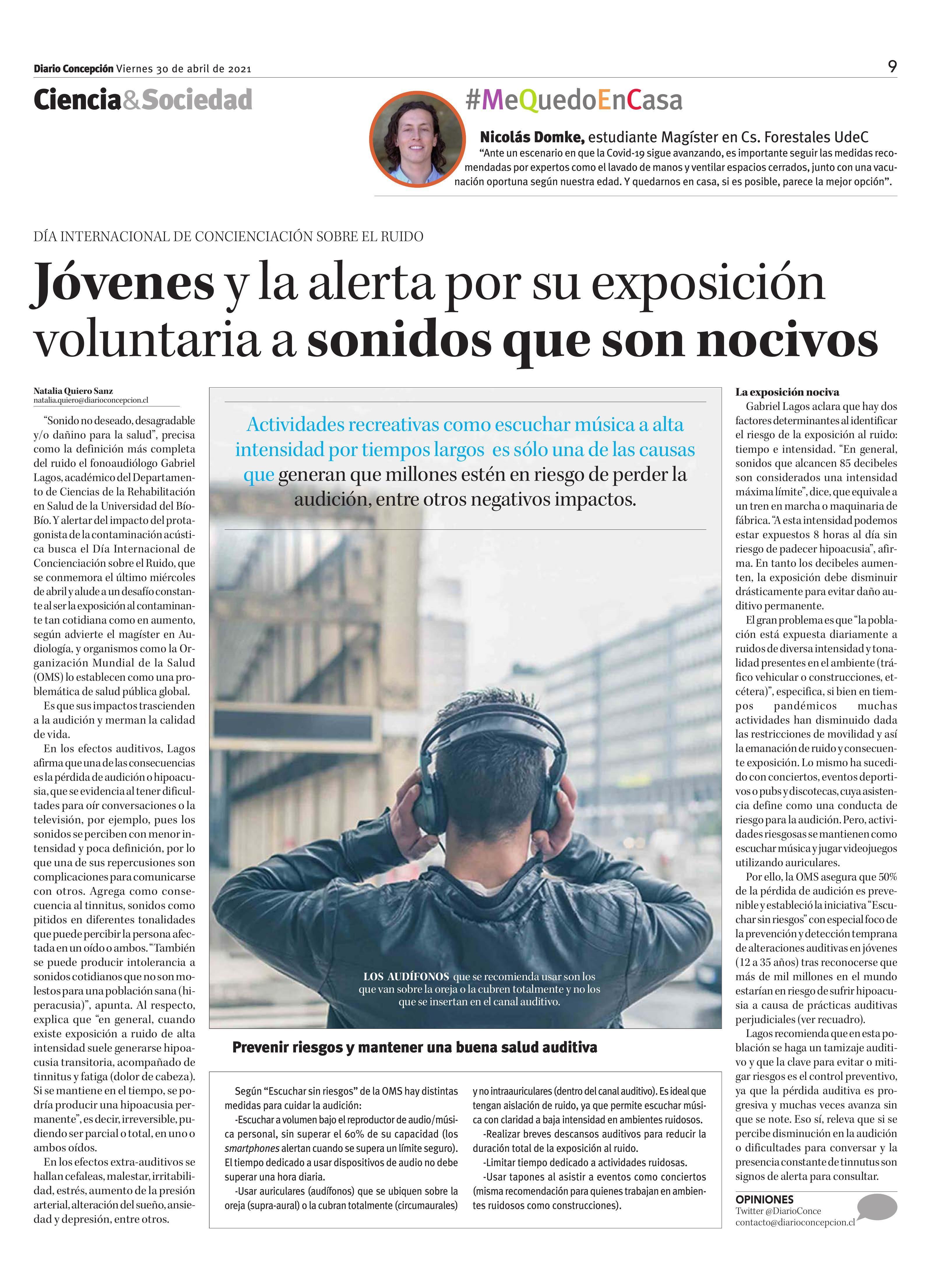 Jóvenes y la alerta por su exposición voluntaria a sonidos que son nocivos 30-04-2021 Diario Concepción |