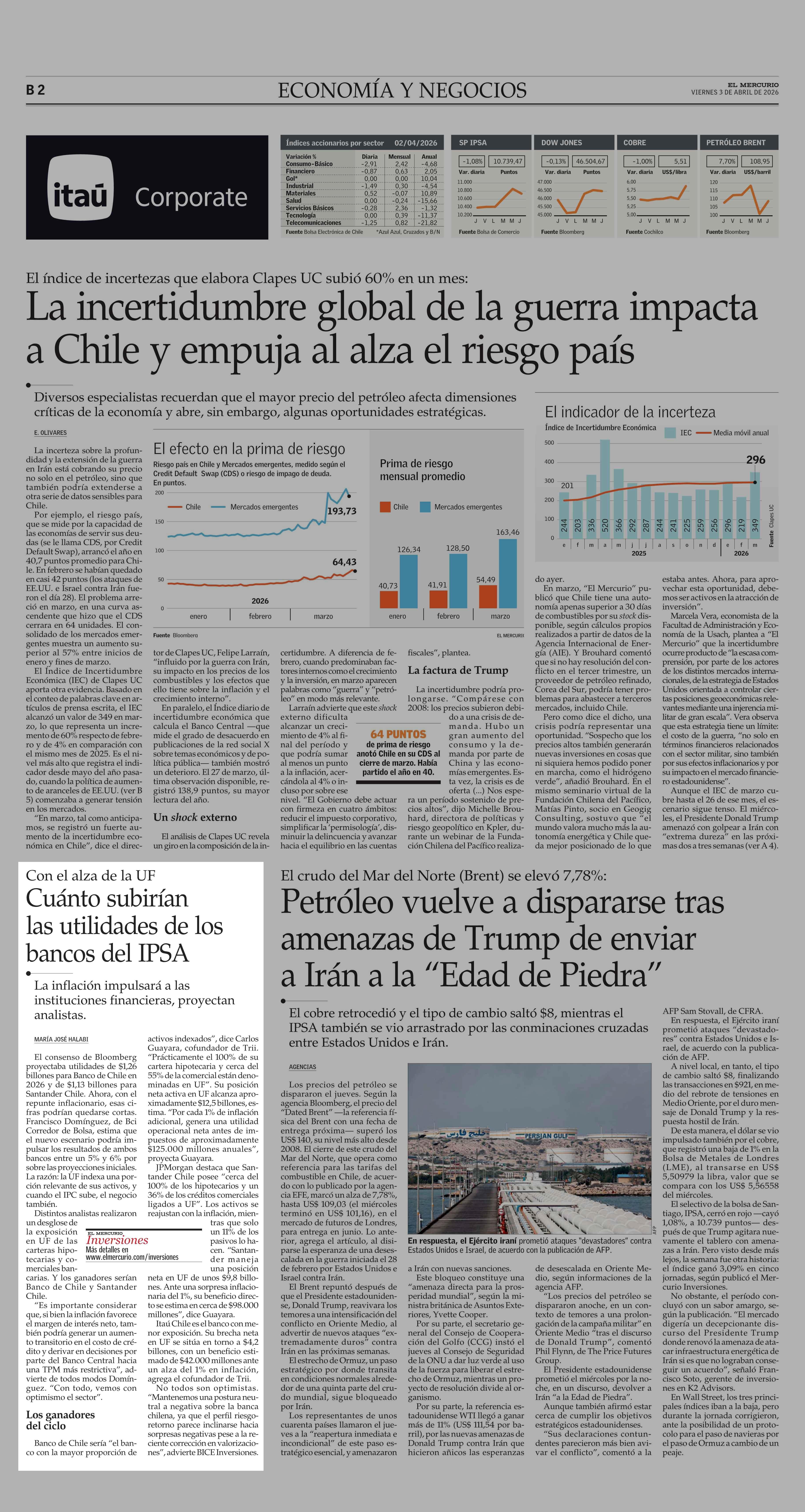 Cuánto subirían las utilidades de los bancos del IPSA 03-04-2026 El Mercurio |