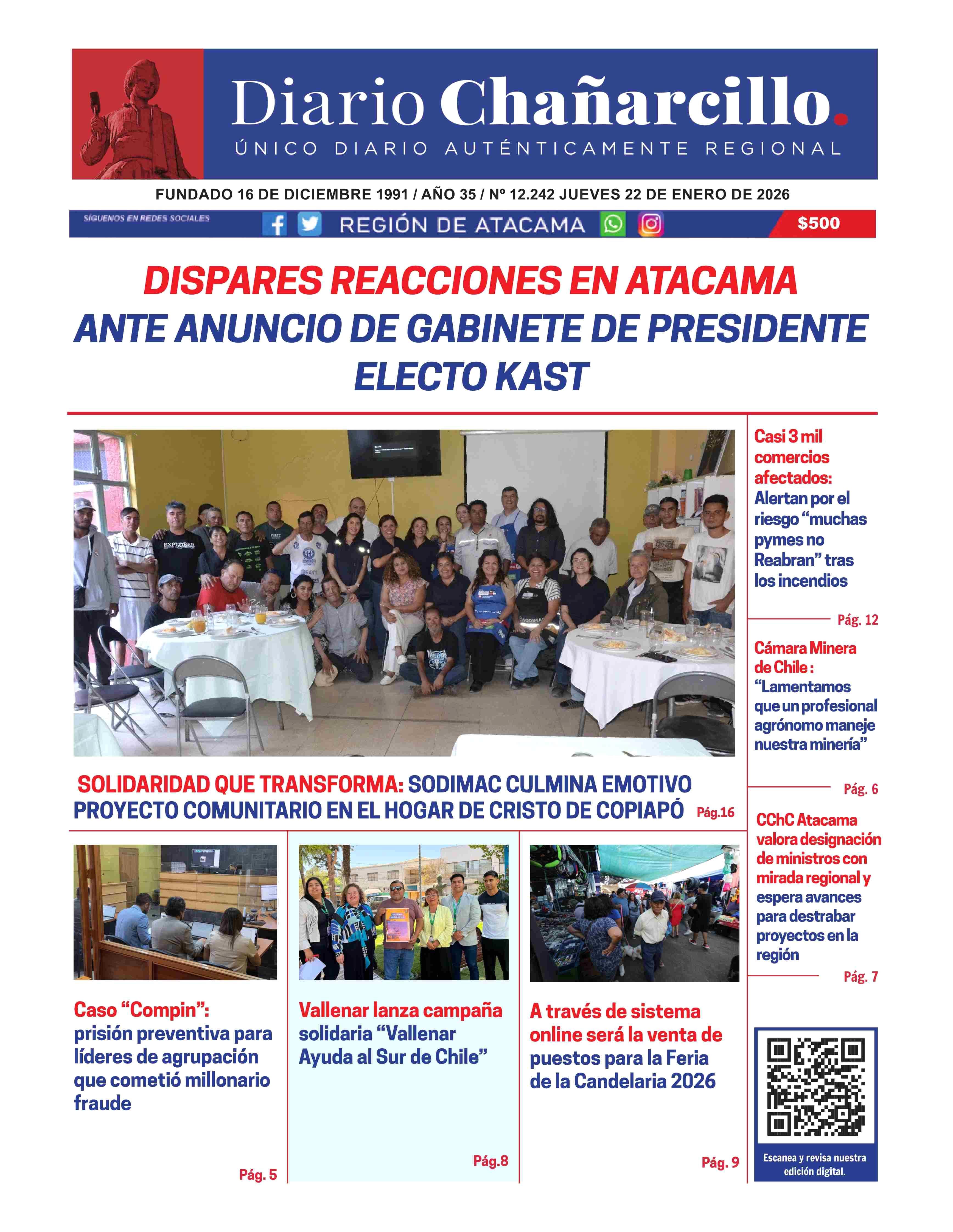 | Fecha: | 22-01-2026 | Sector: | Portada | Región: | Región de Atacama |