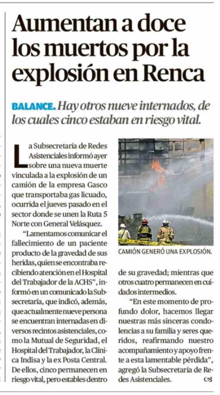Título: Aumentan a doce los muertos por la explosión en Renca