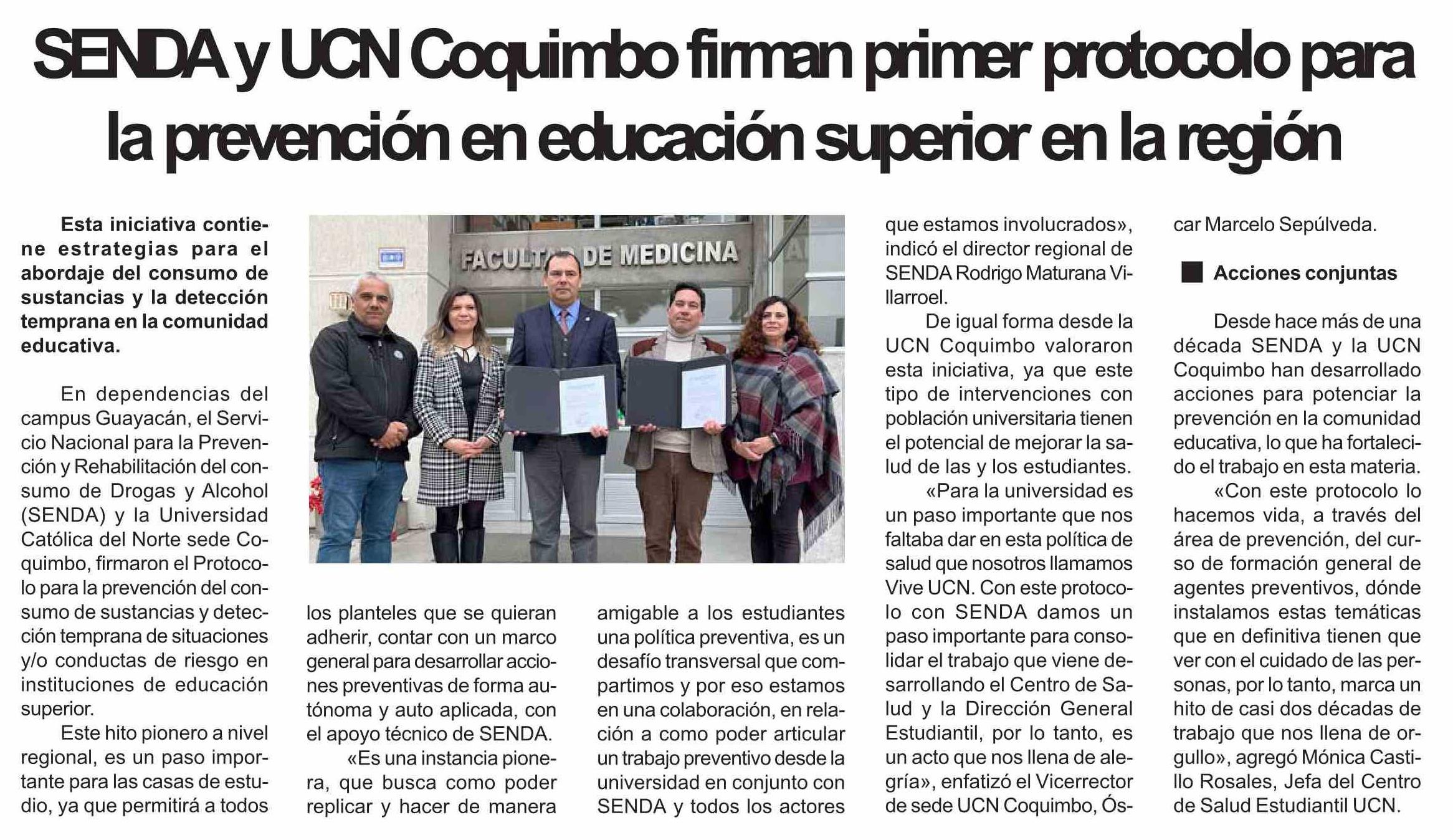 | Título: | SENDA y UCN Coquimbo firman primer protocolo para la prevención en educación superior en la región |