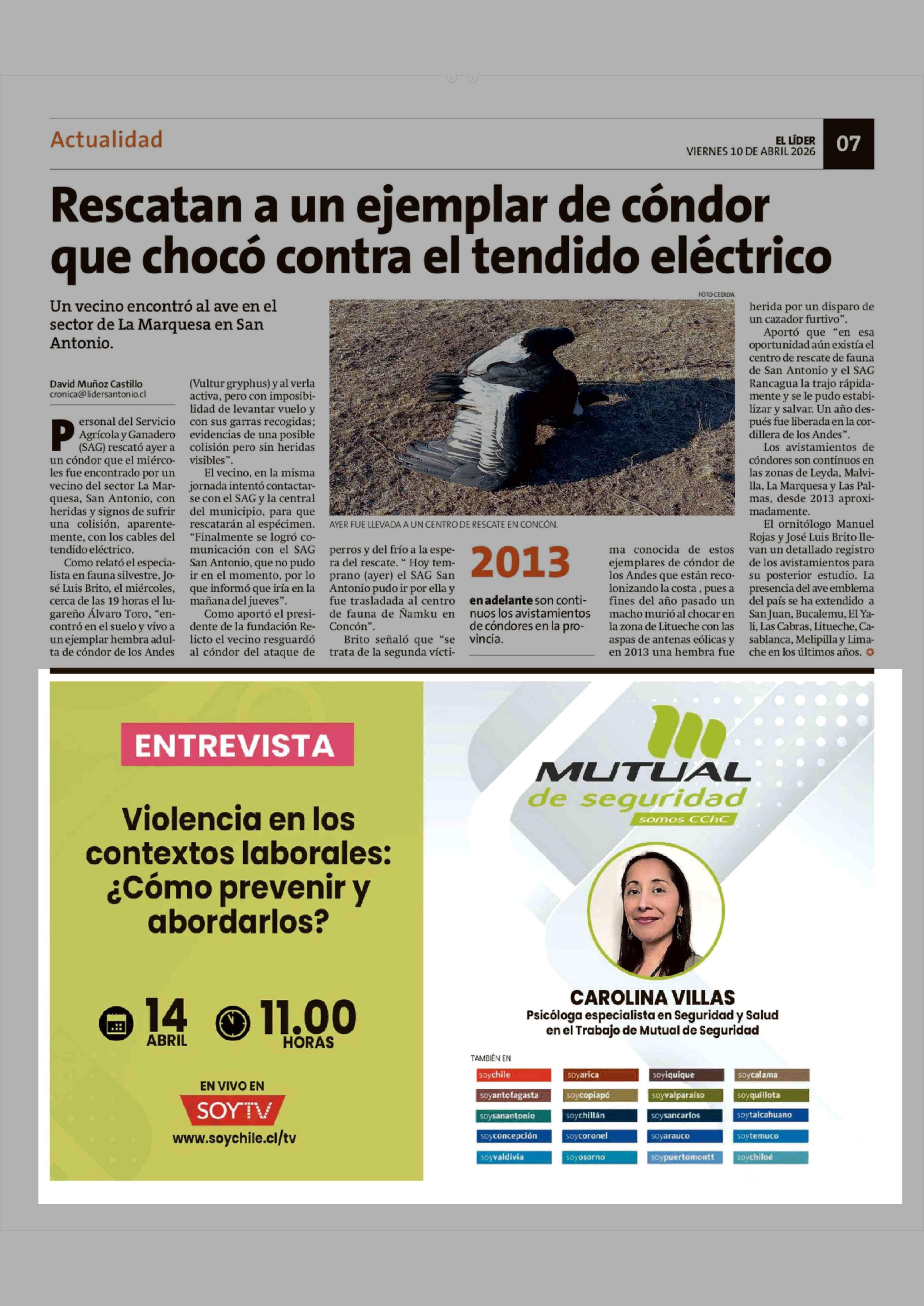 Aviso Publicitario: MUTUAL de seguridad 10-04-2026 El Líder |