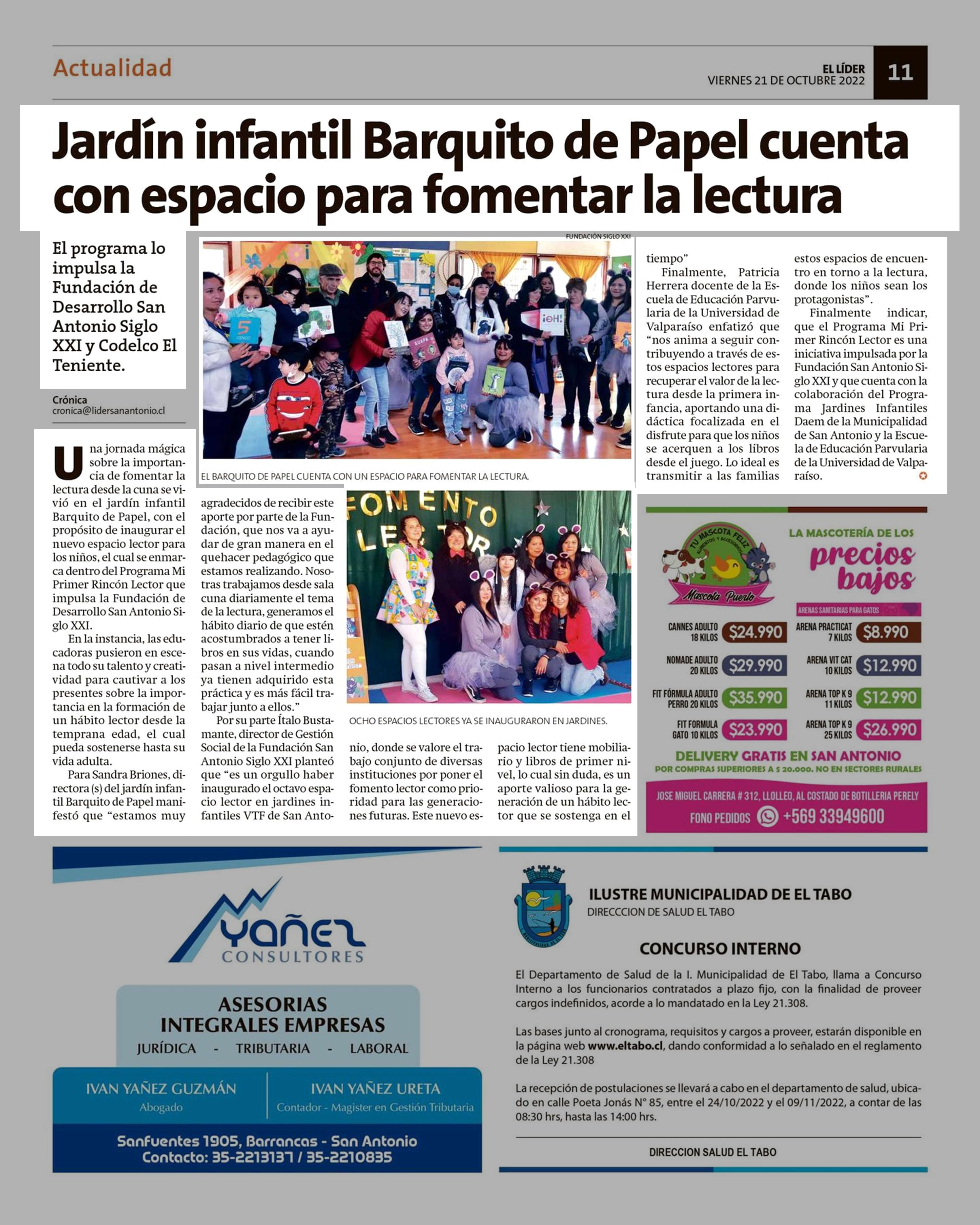 Jardin infantil Barquito de Papel cuenta con espacio para fomentar la lectura 21-10-2022 El Líder |