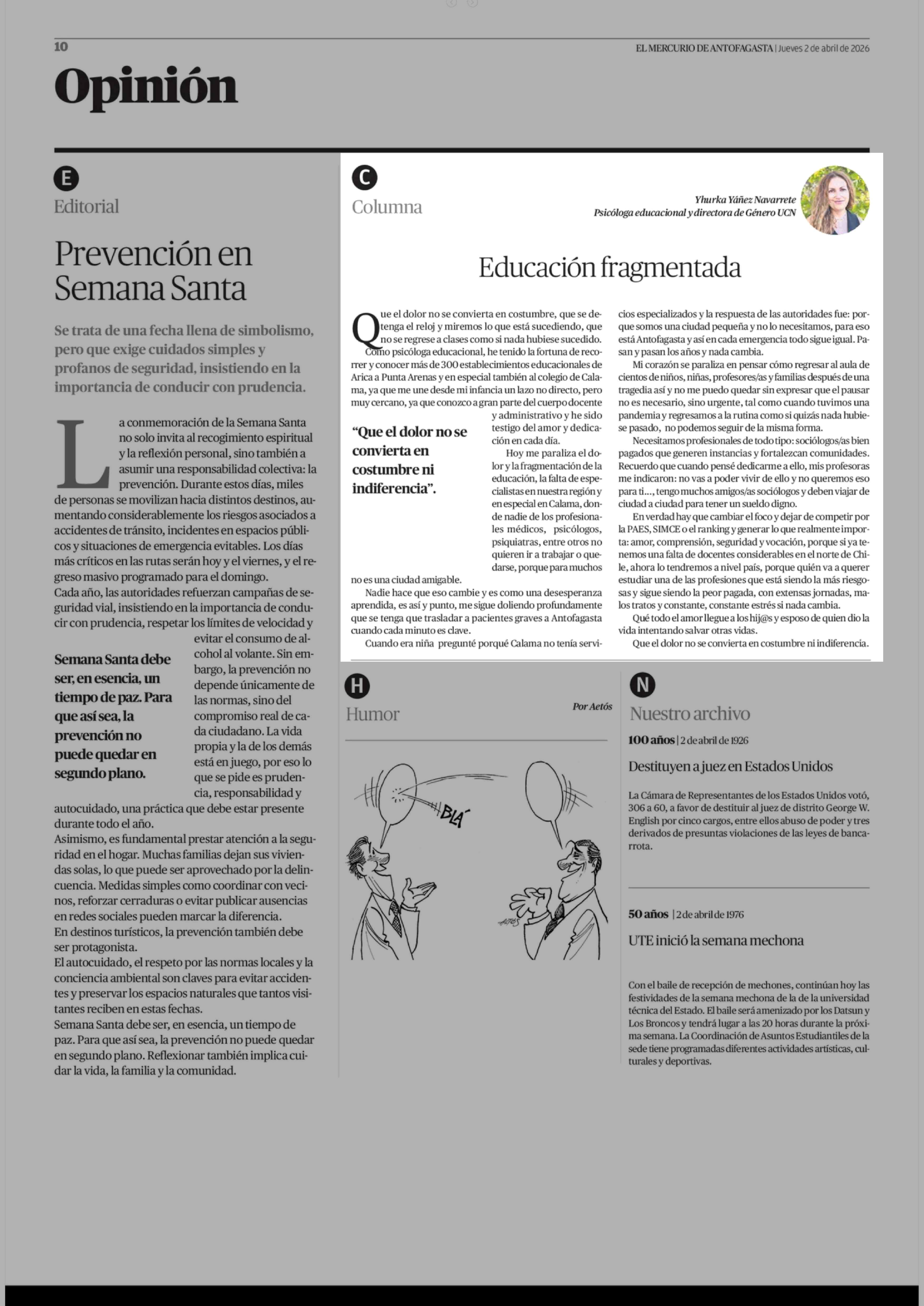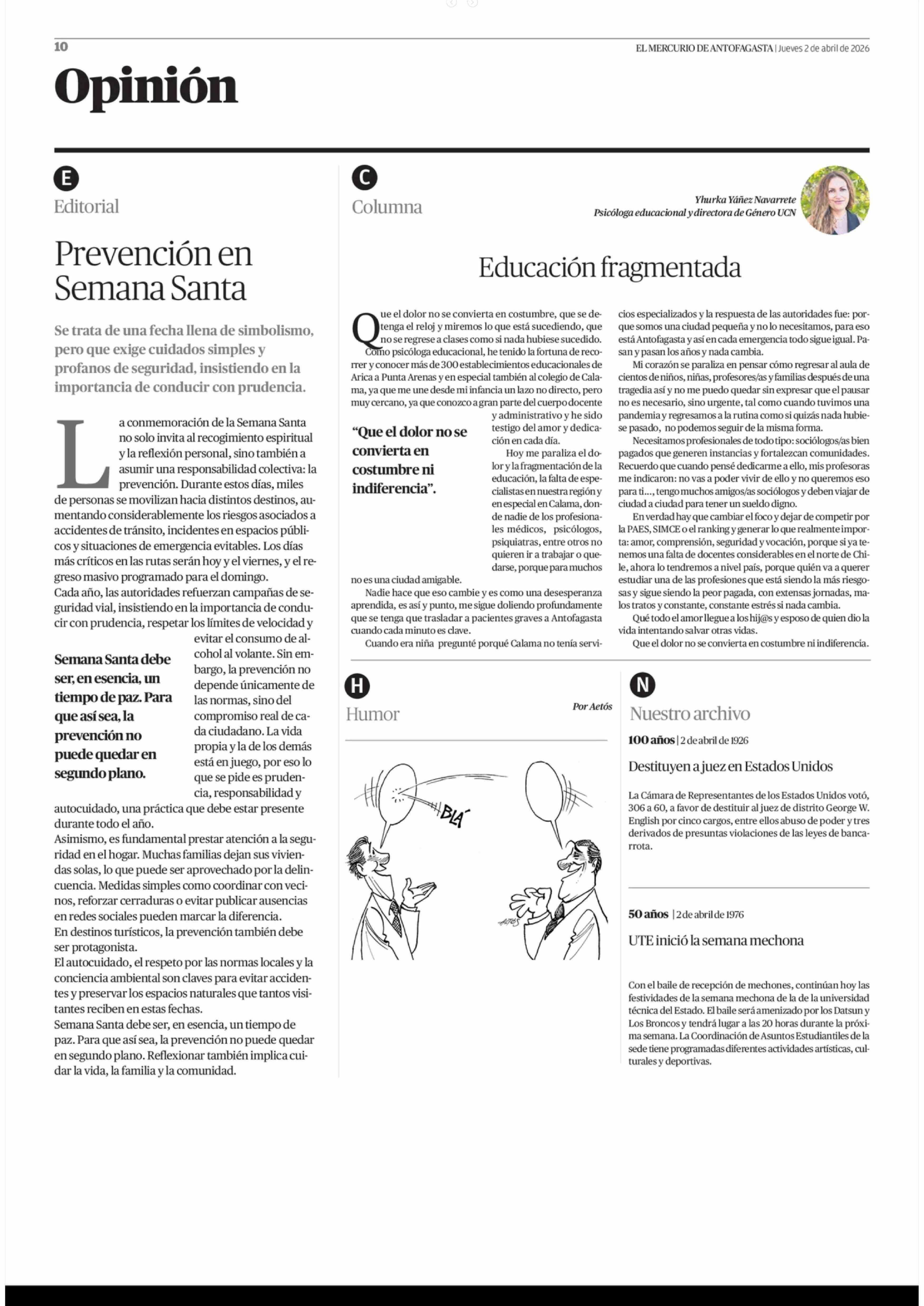 Fecha: 02-04-2026 Sector: Columnas de Opinión Región: Región de Antofagasta