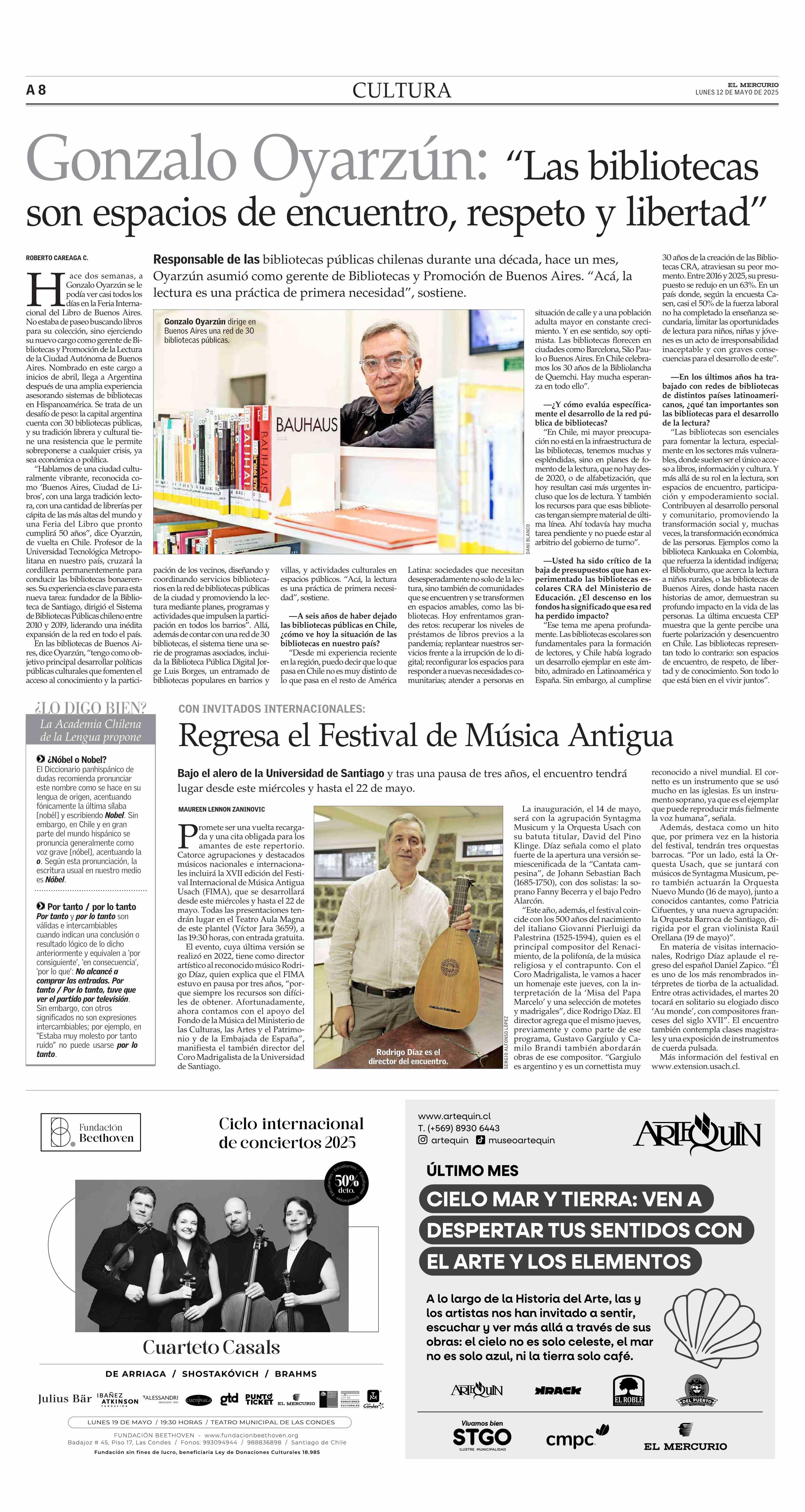 Gonzalo Oyarzún: “Las bibliotecas son espacios de encuentro, respeto y libertad” 12-05-2025 El Mercurio |