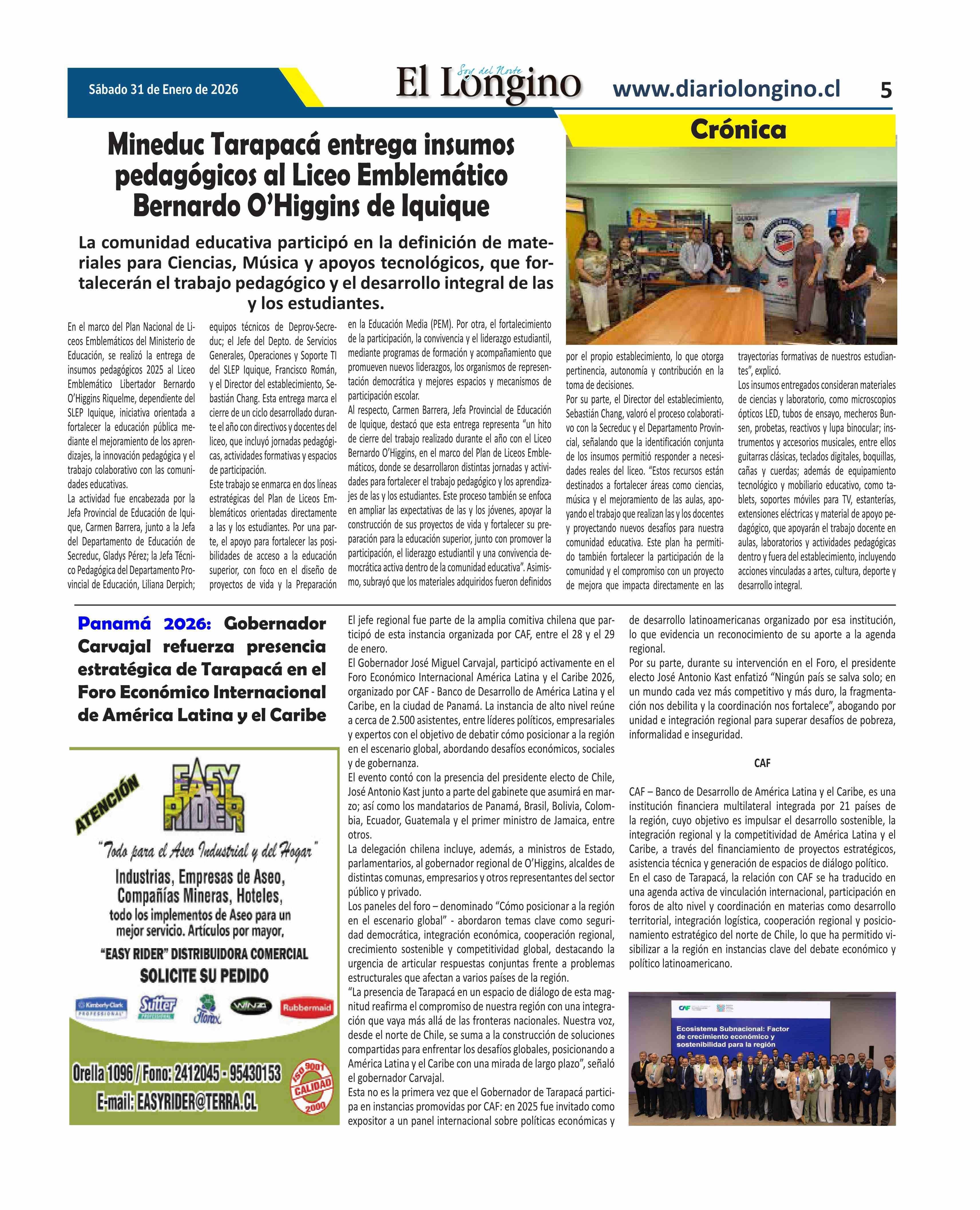 | Fecha: | 31-01-2026 | Sector: | Noticia general | Región: | Región de Tarapacá |