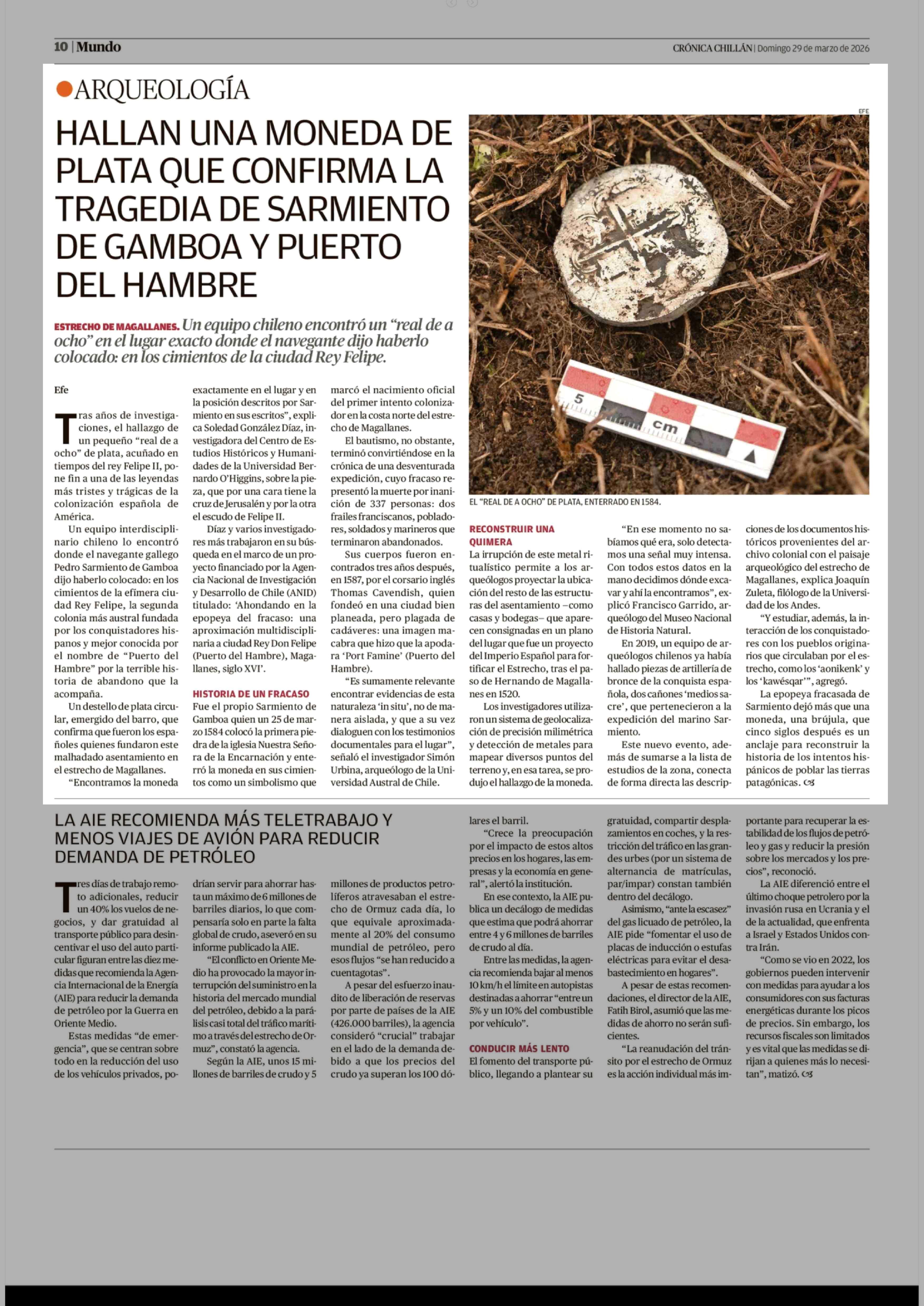 HALLAN UNA MONEDA DE PLATA QUE CONFIRMA LA TRAGEDIA DE SARMIENTO DE GAMBOA Y PUERTO DEL HAMBRE 29-03-2026 Crónica de Chillán |