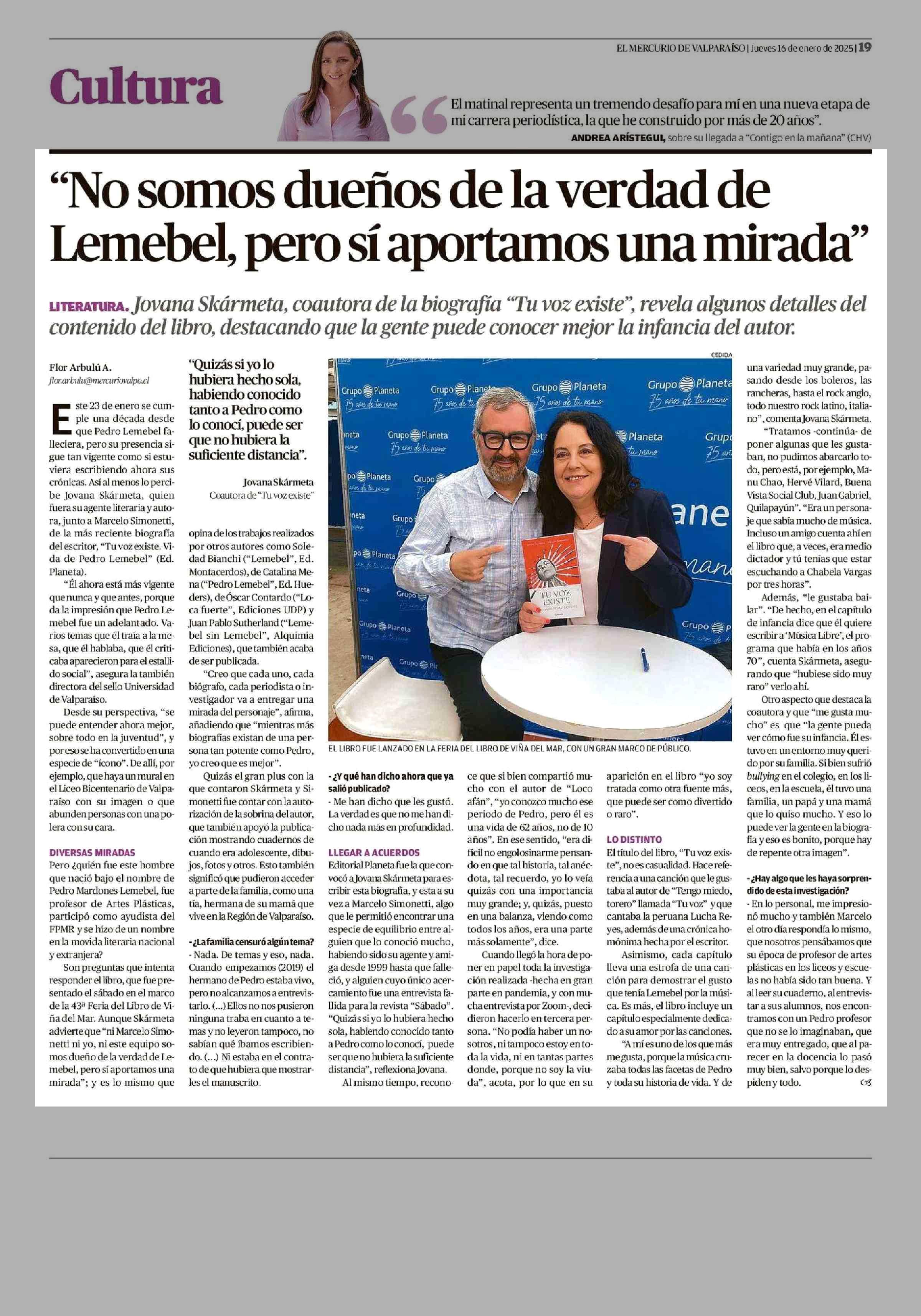 “No somos dueños de la verdad de Lemebel, pero sí aportamos una mirada” 16-01-2025 El Mercurio de Valparaíso |