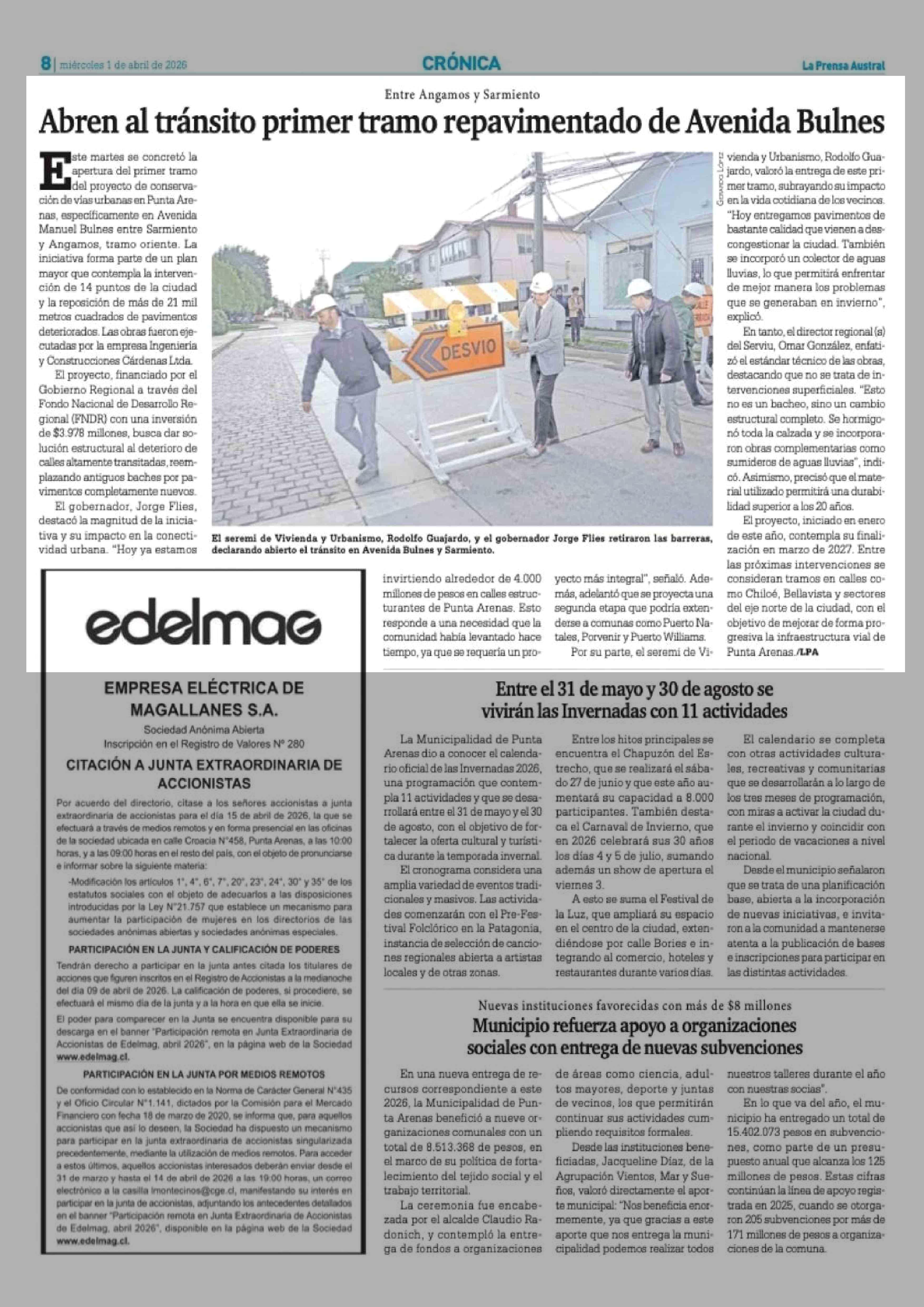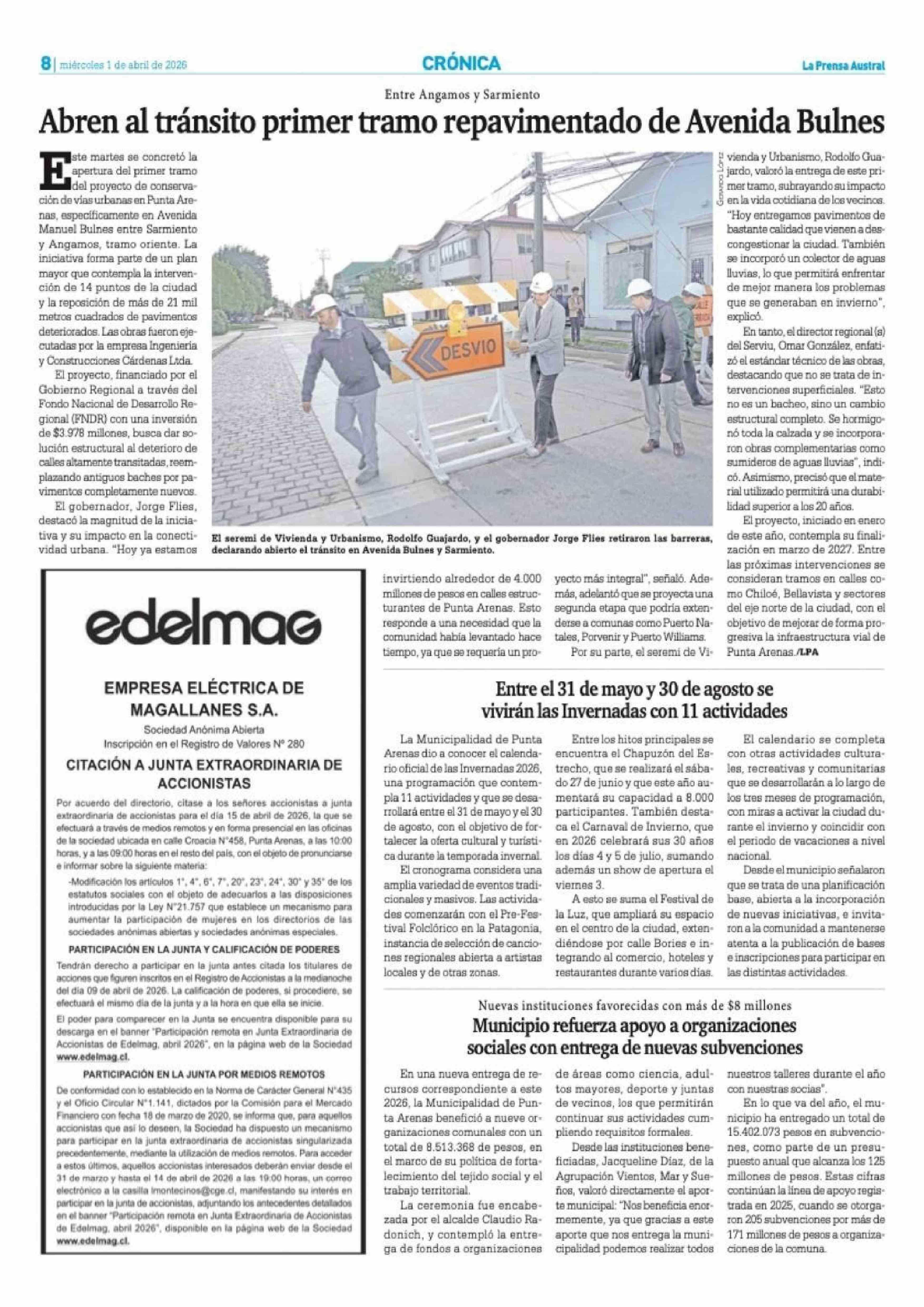 | Fecha: | 01-04-2026 | Sector: | Noticia general | Región: | Región de Magallanes y de la Antártica Chilena |