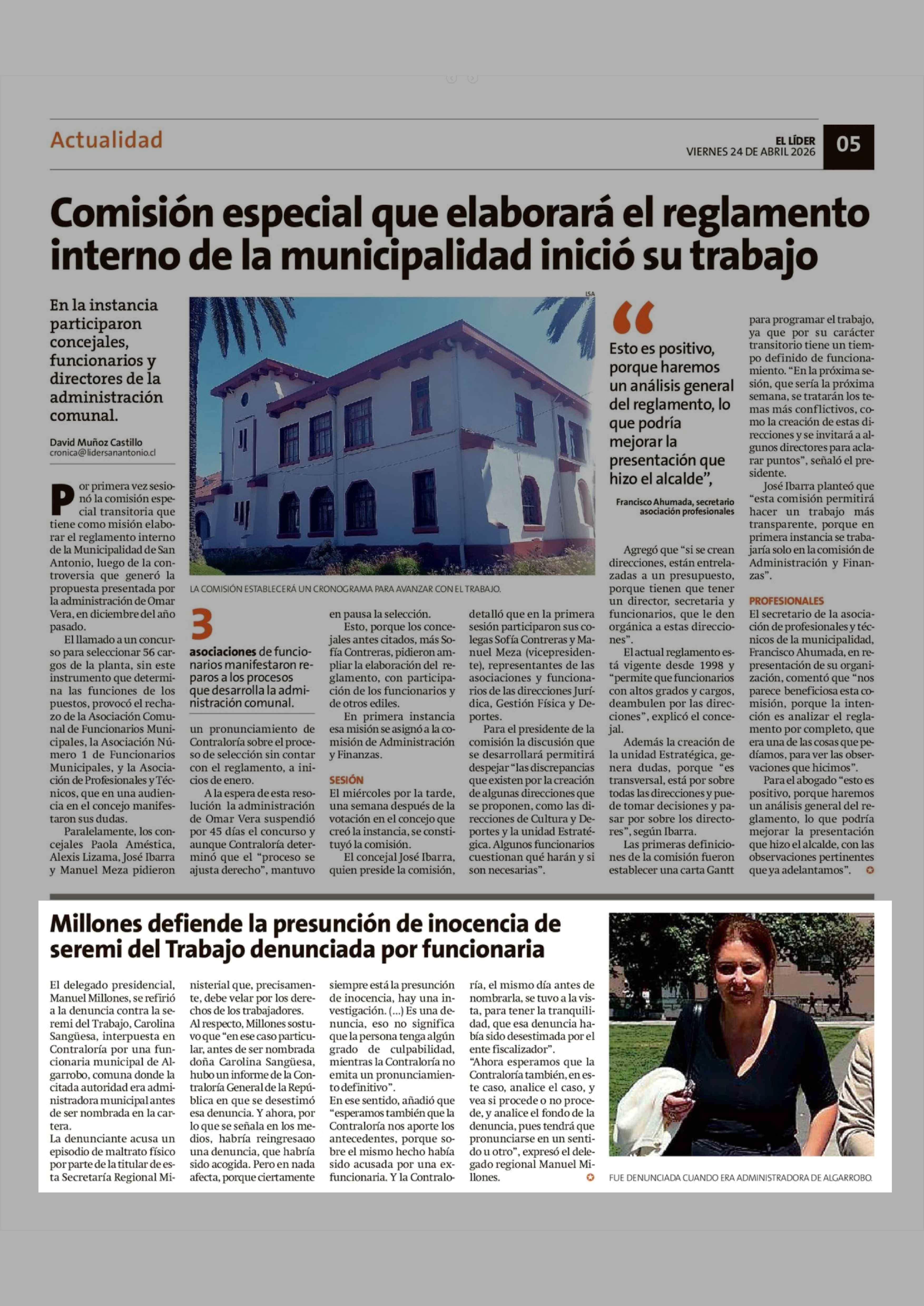 | Título: | Millones defiende la presunción de inocencia de seremi del Trabajo denunciada por funcionaria |