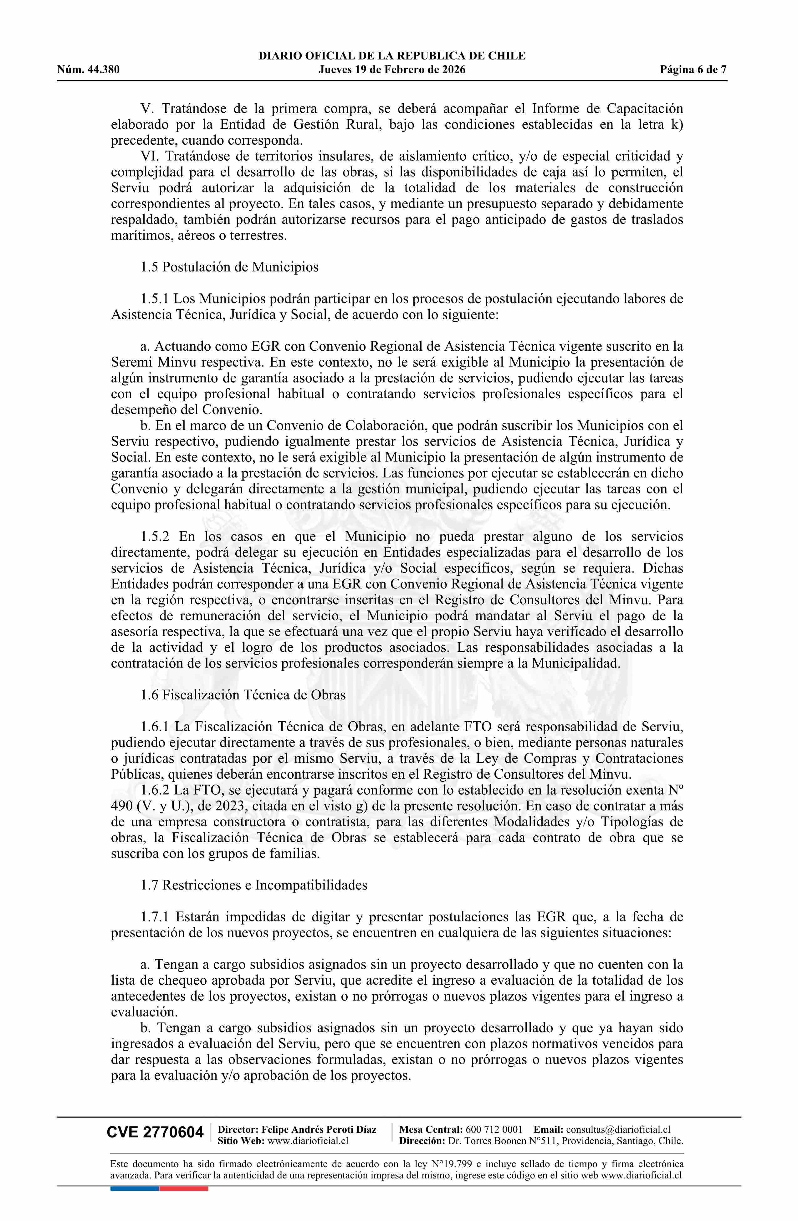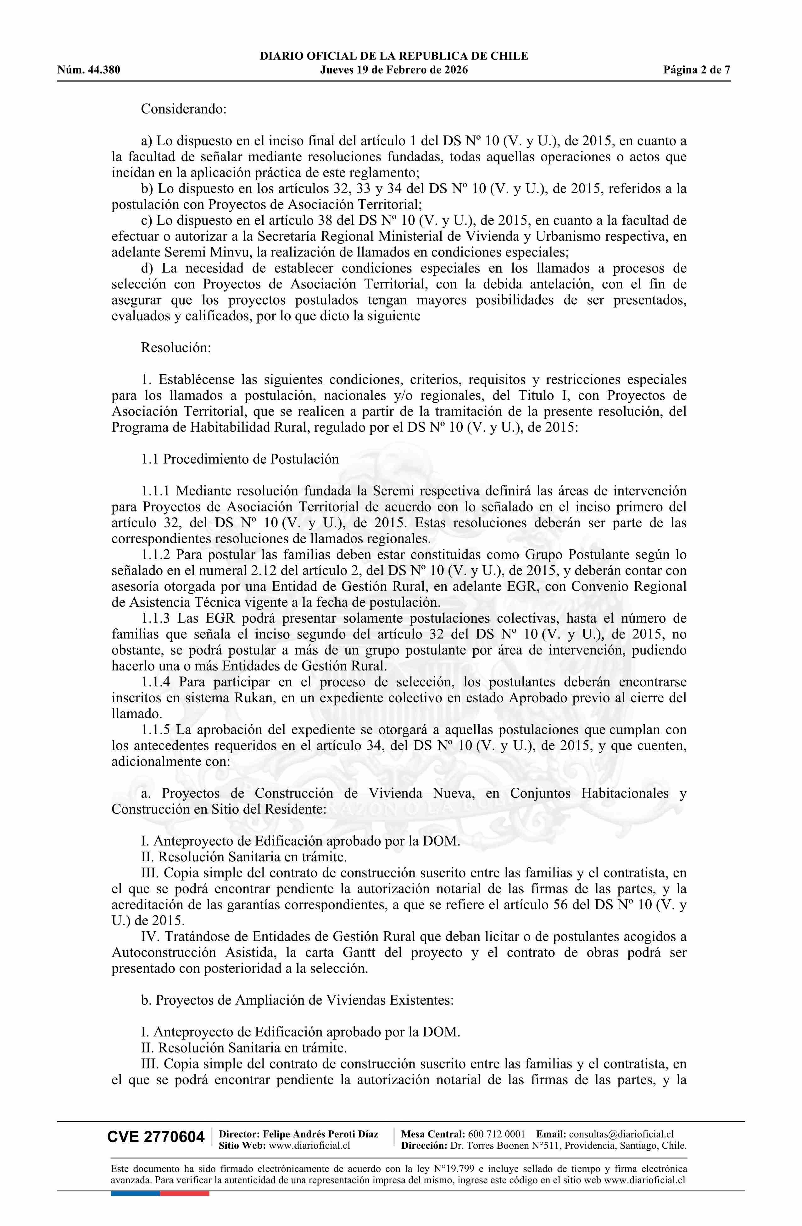 Resolución exenta número 237, de 2026.- Establece condiciones, criterios, requisitos y restricciones especiales para llamados a postulación con Proyecto de Asociación Territorial, del Título I, del Programa de Habitabilidad Rural, regulado por el decreto Nº 10 de 2015, y sus modificaciones