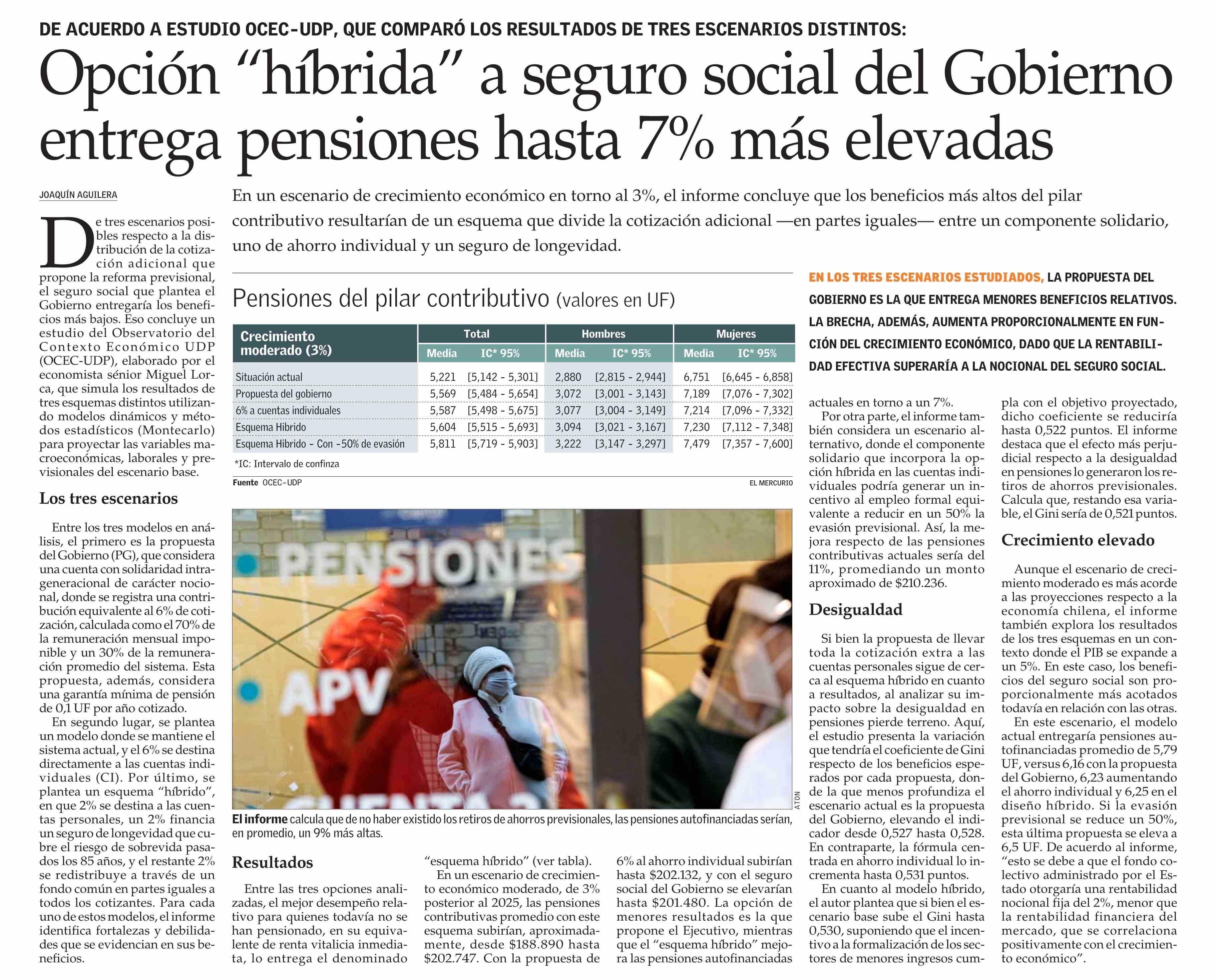 Opción “híbrida” a seguro social del Gobierno entrega pensiones hasta 7% más elevadas 16-09-2023 El Mercurio |