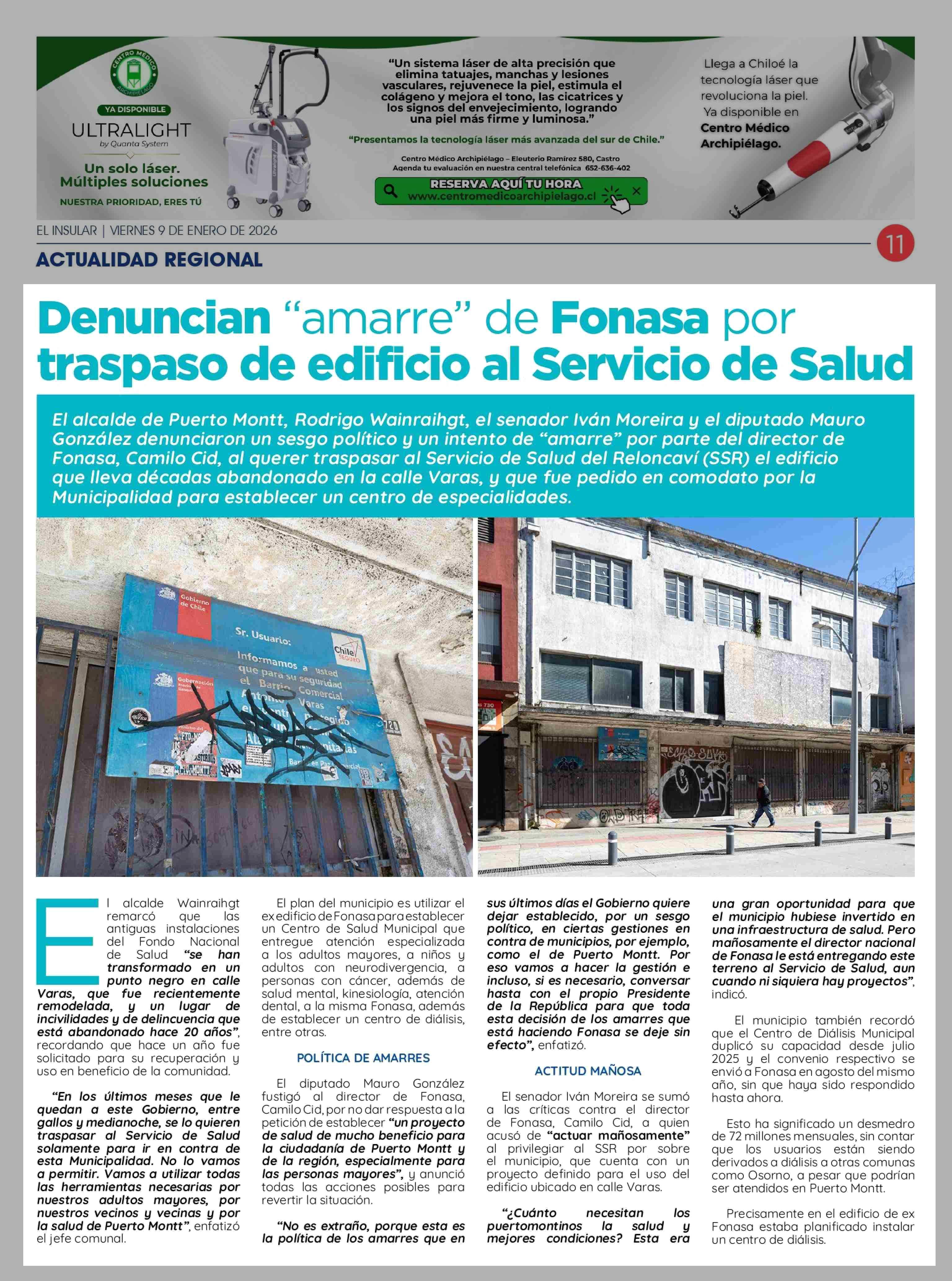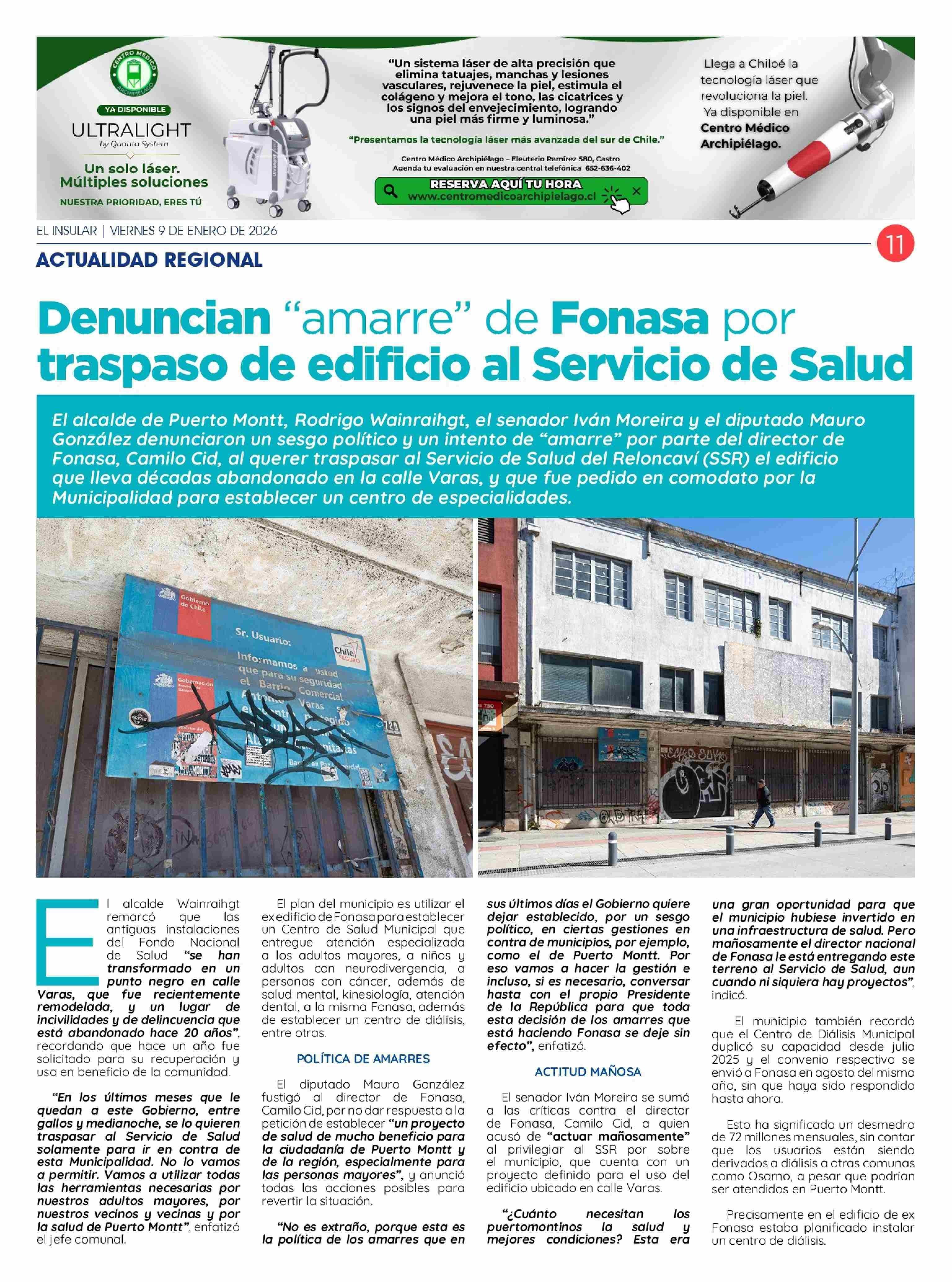 Título: Denuncian "amarre" de Fonasa por traspaso de edificio al Servicio de Salud