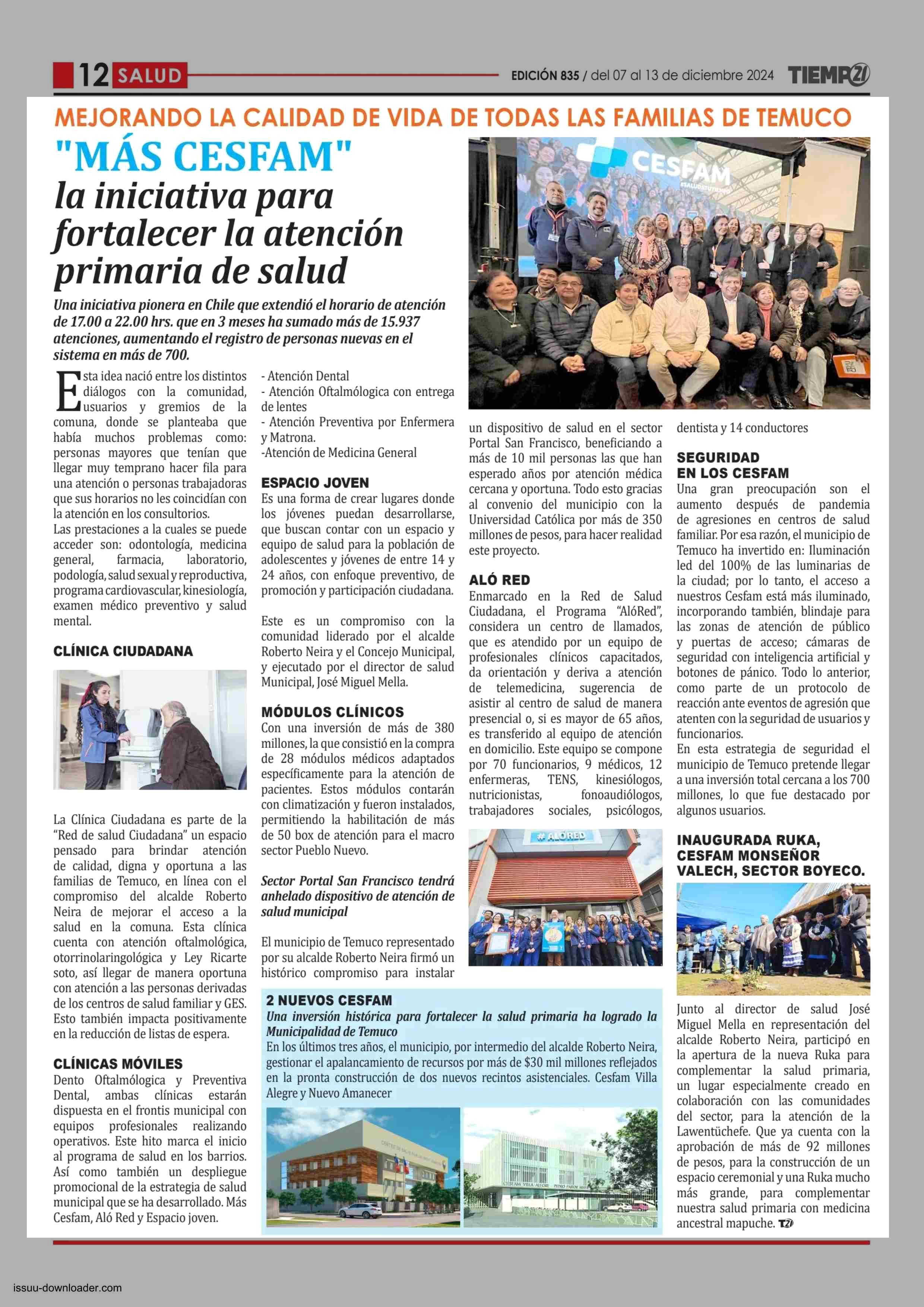 "MAS CESFAM" la iniciativa para fortalecer la atención primaria de salud 07-12-2024 Tiempo 21 |