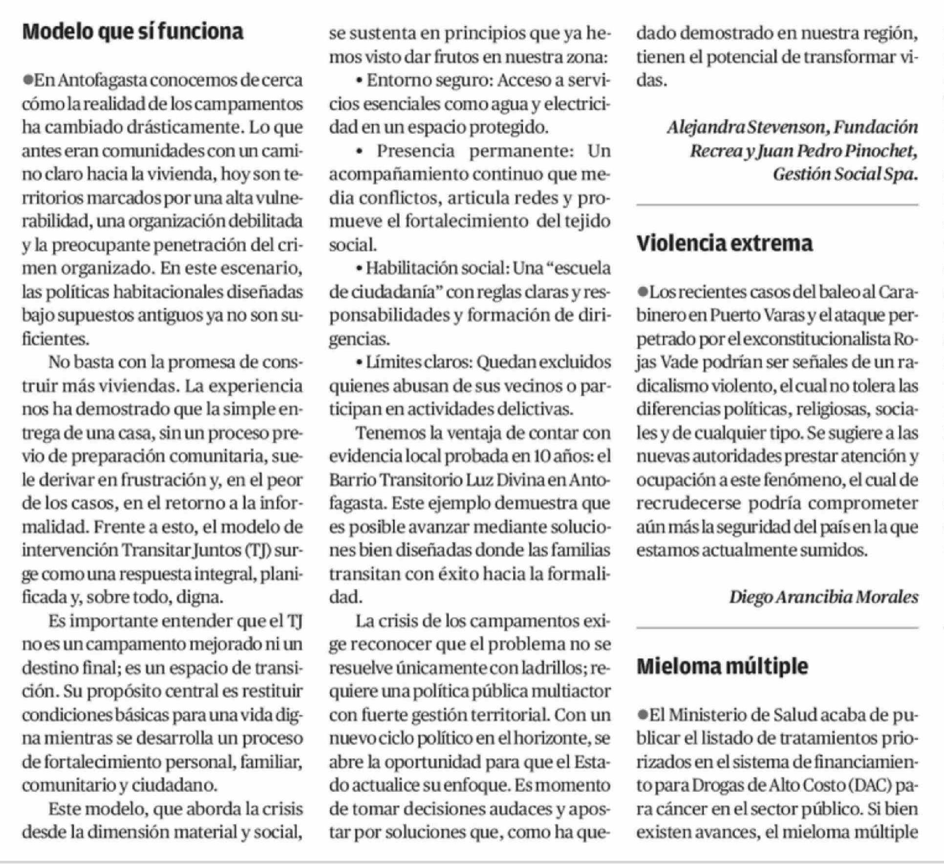 Cartas: Modelo que si funciona 16-03-2026 El Mercurio de Antofagasta |