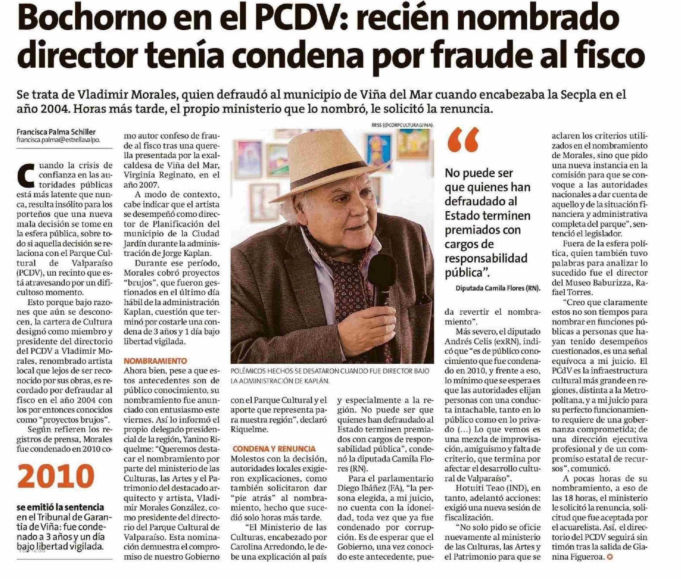 Bochorno en el PCDV: recién nombrado director tenía condena por fraude al fisco 31-05-2025 La Estrella de Valparaíso |