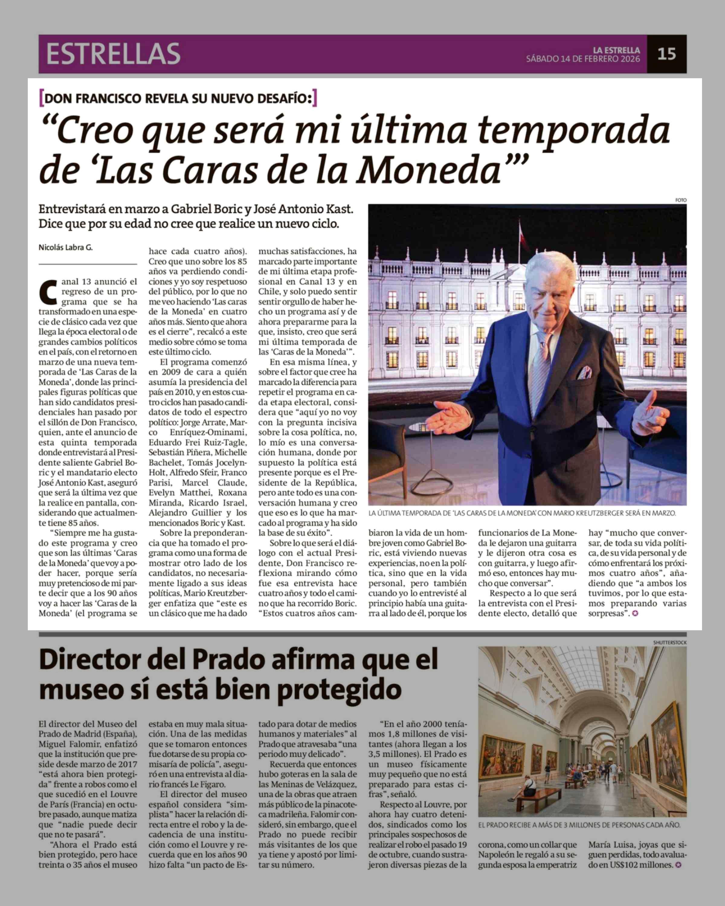 "Creo que será mi última temporada de 'Las Caras de la Moneda" 14-02-2026 La Estrella de Chiloé |