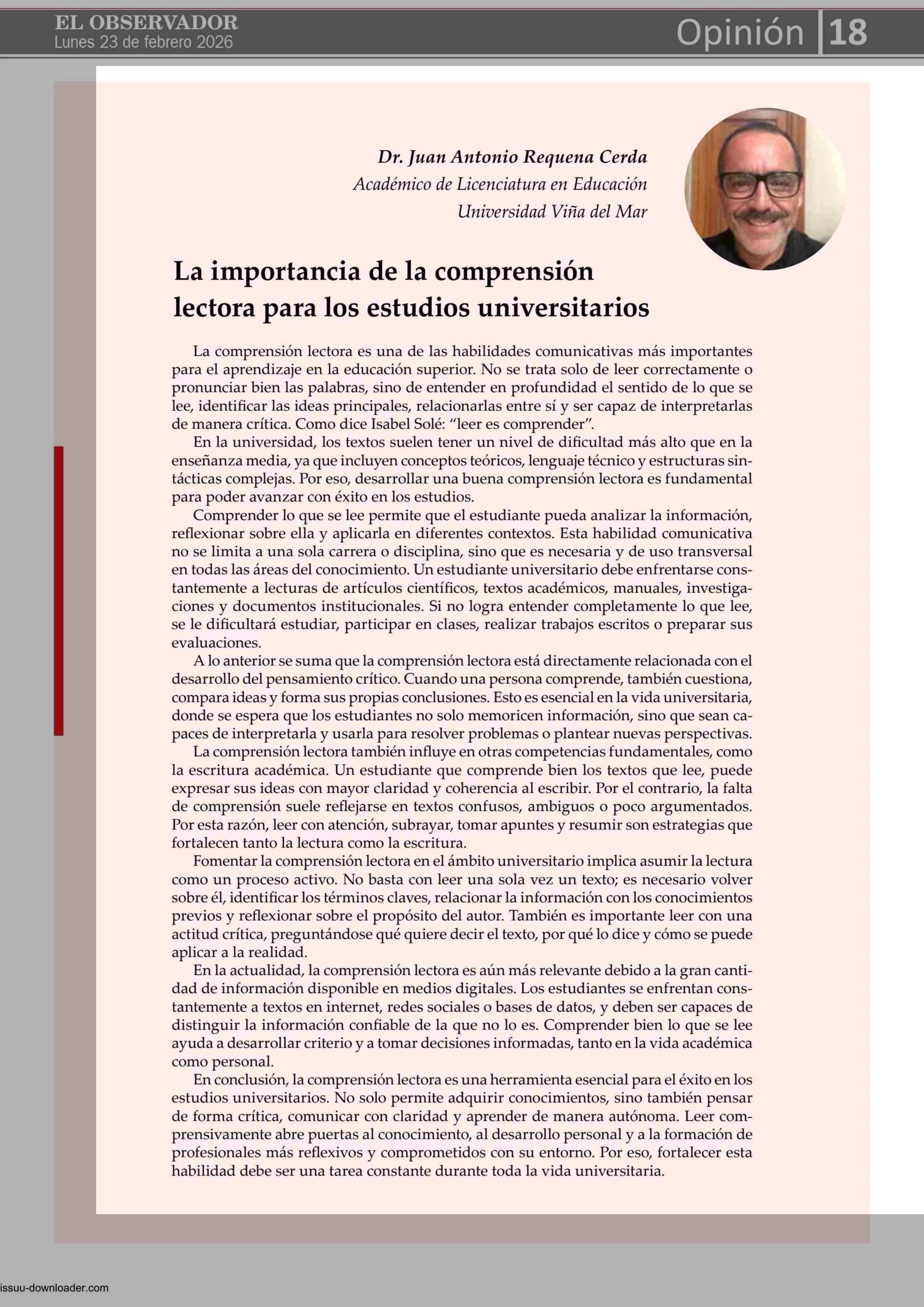 La importancia de la comprensión lectora para los estudios universitarios 23-02-2026 El Observador Vespertino |