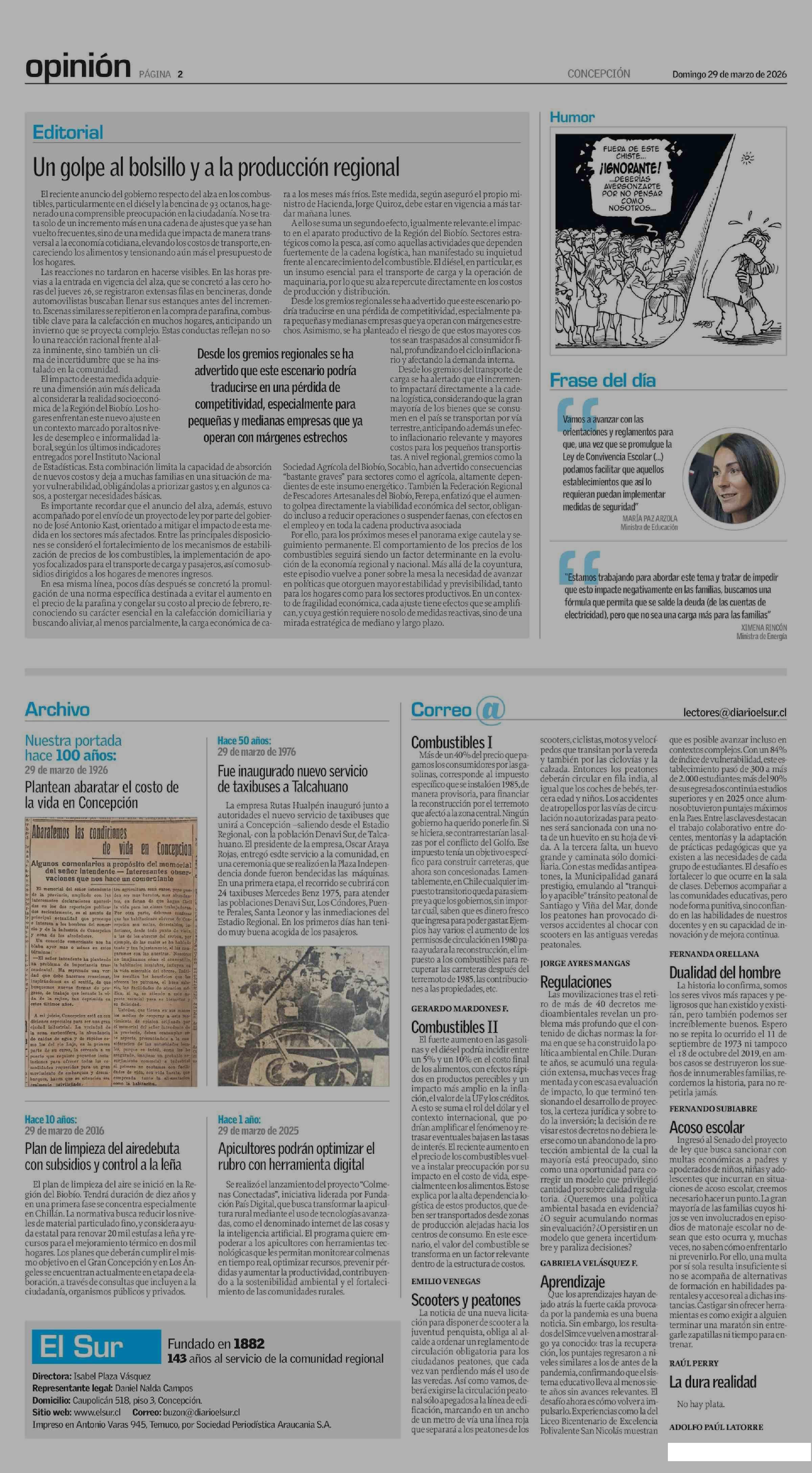 Fecha: 29-03-2026 Sector: Cartas Región: Región del Bío-Bío