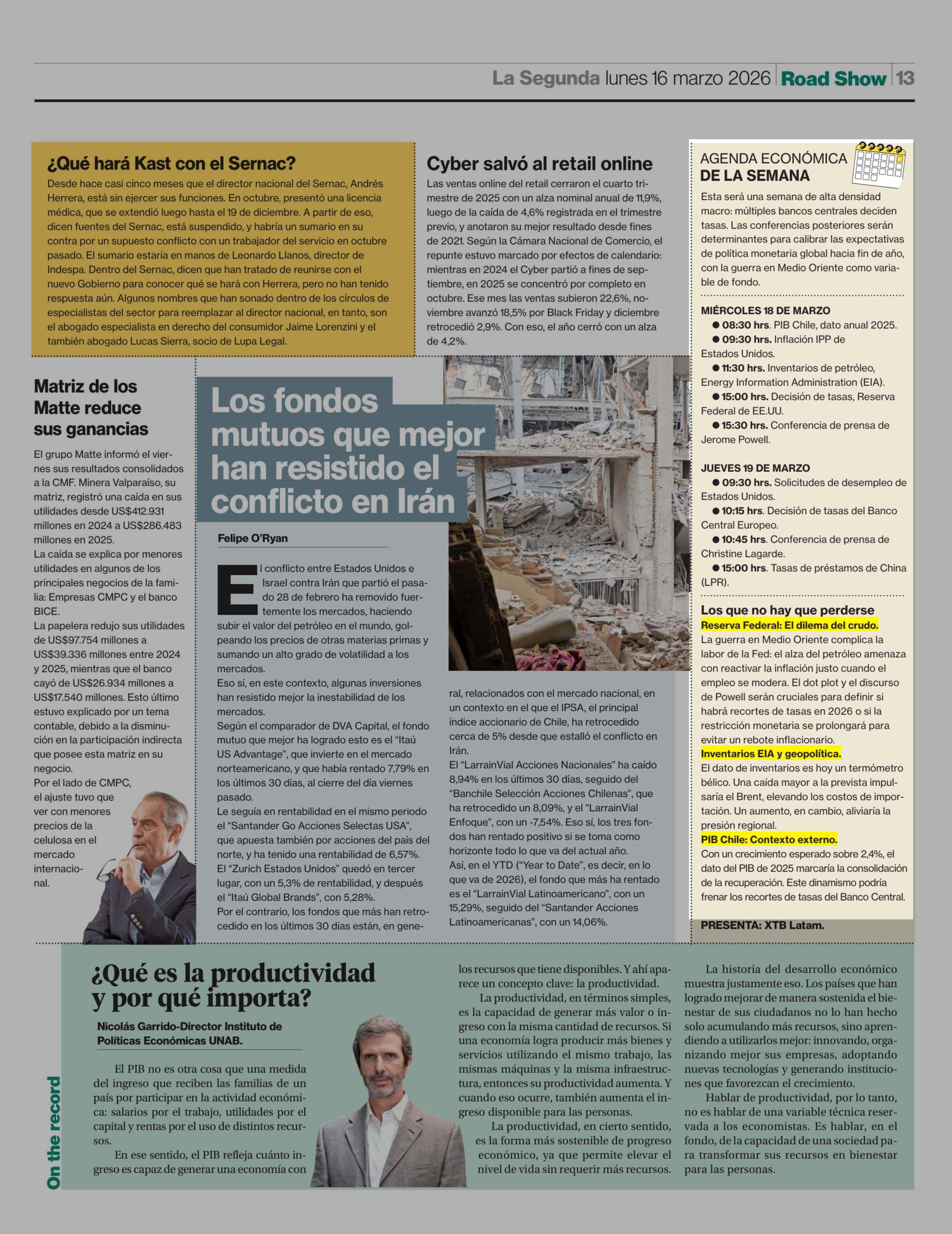 AGENDA ECONÓMICA DE LA SEMANA 16-03-2026 La Segunda |