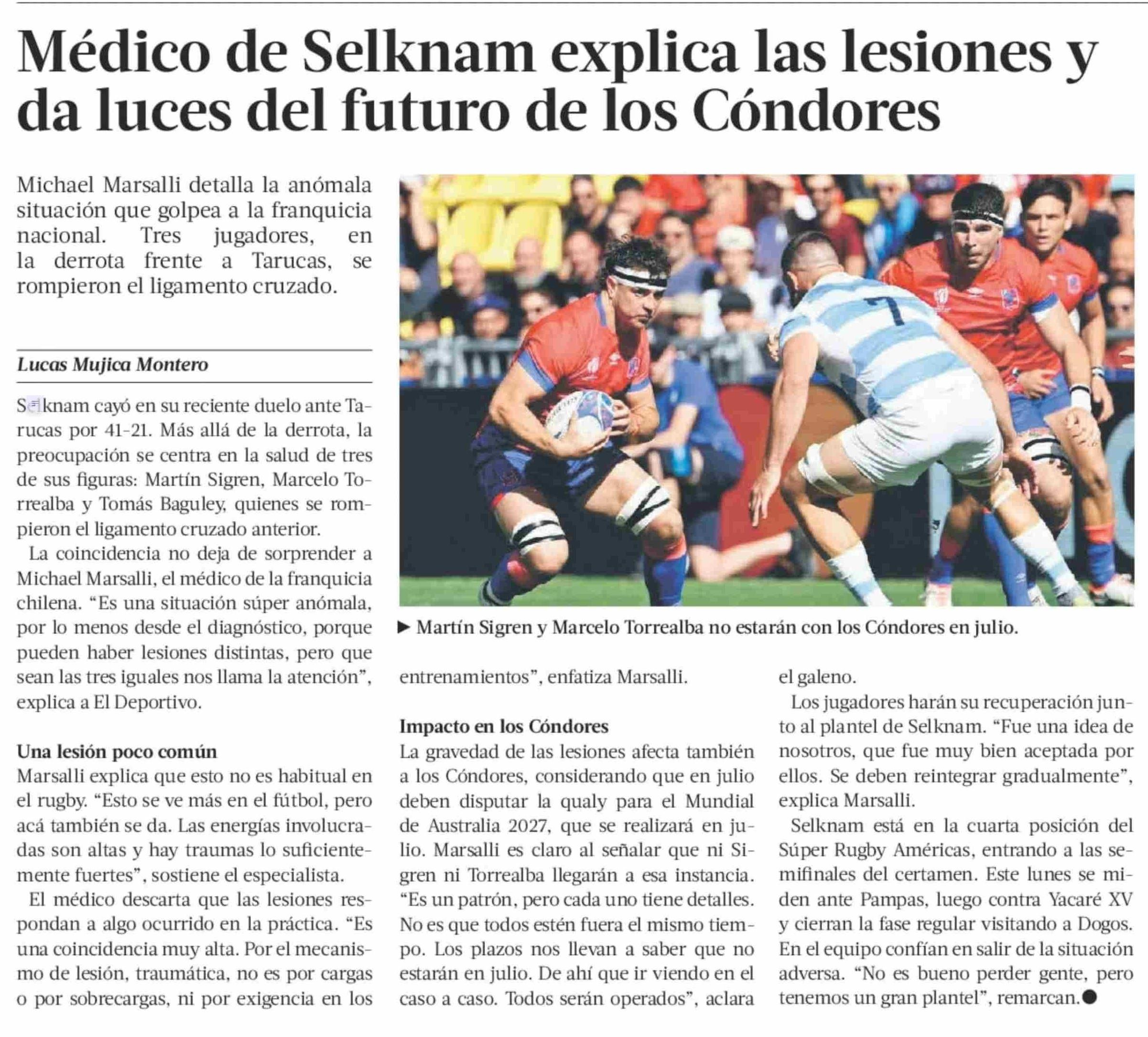 Título: Médico de Selknam explica las lesiones y da luces del futuro de los Cóndores