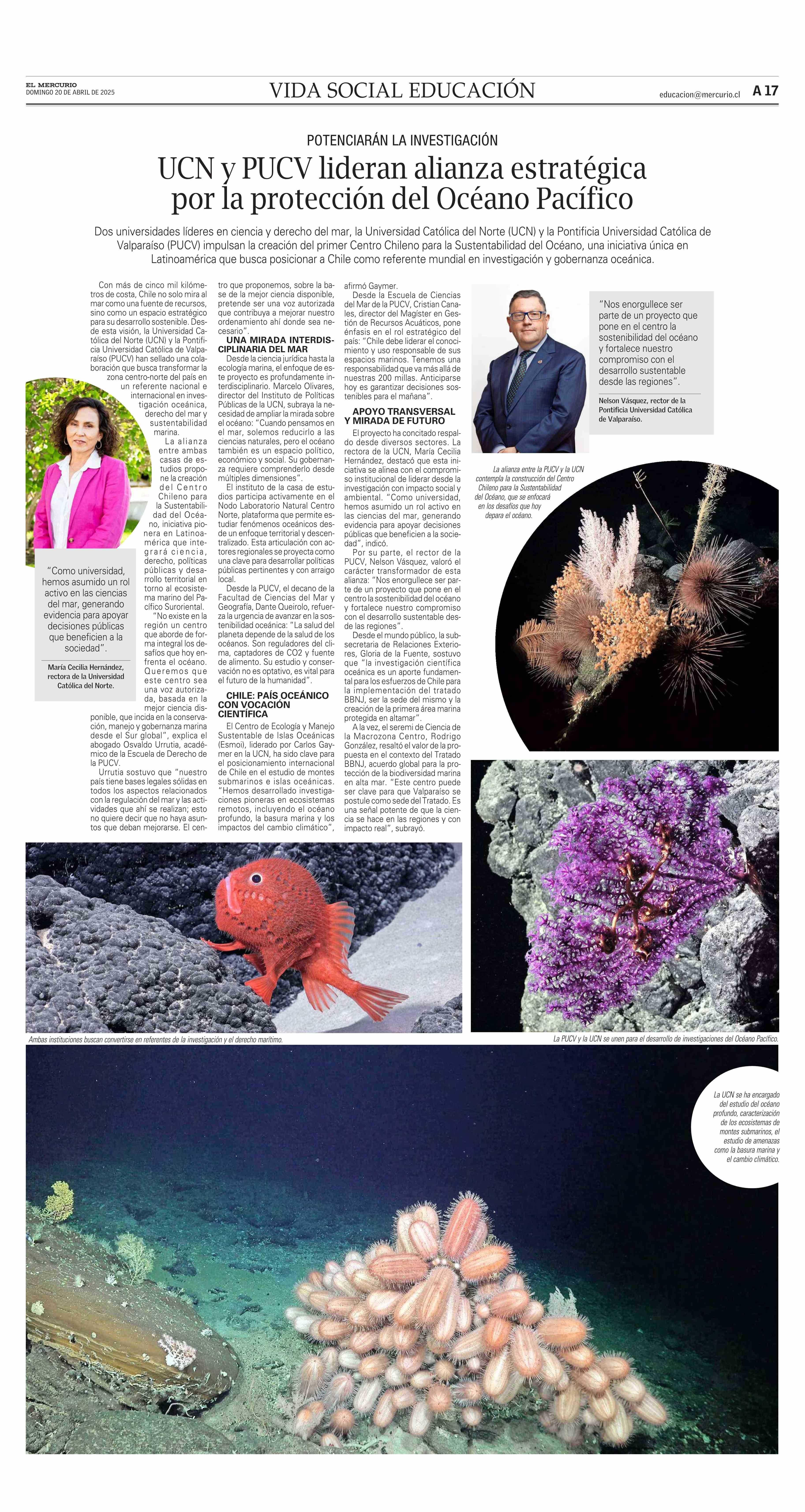 UCN y PUCV lideran alianza estratégica por la protección del Océano Pacífico 20-04-2025 El Mercurio |