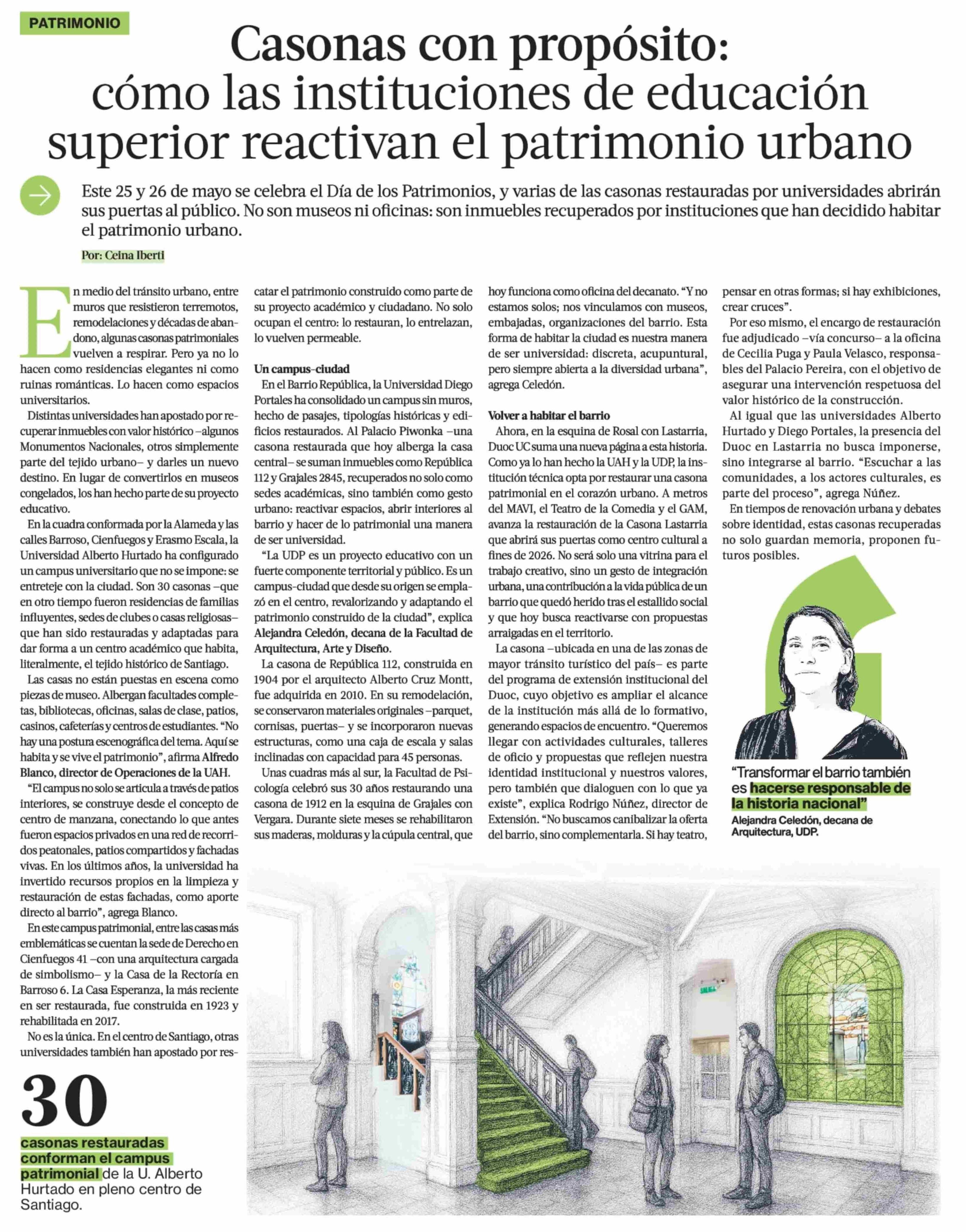 Casonas con propósito: cómo las instituciones de educación superior reactivan el patrimonio urbano 18-05-2025 La Tercera |