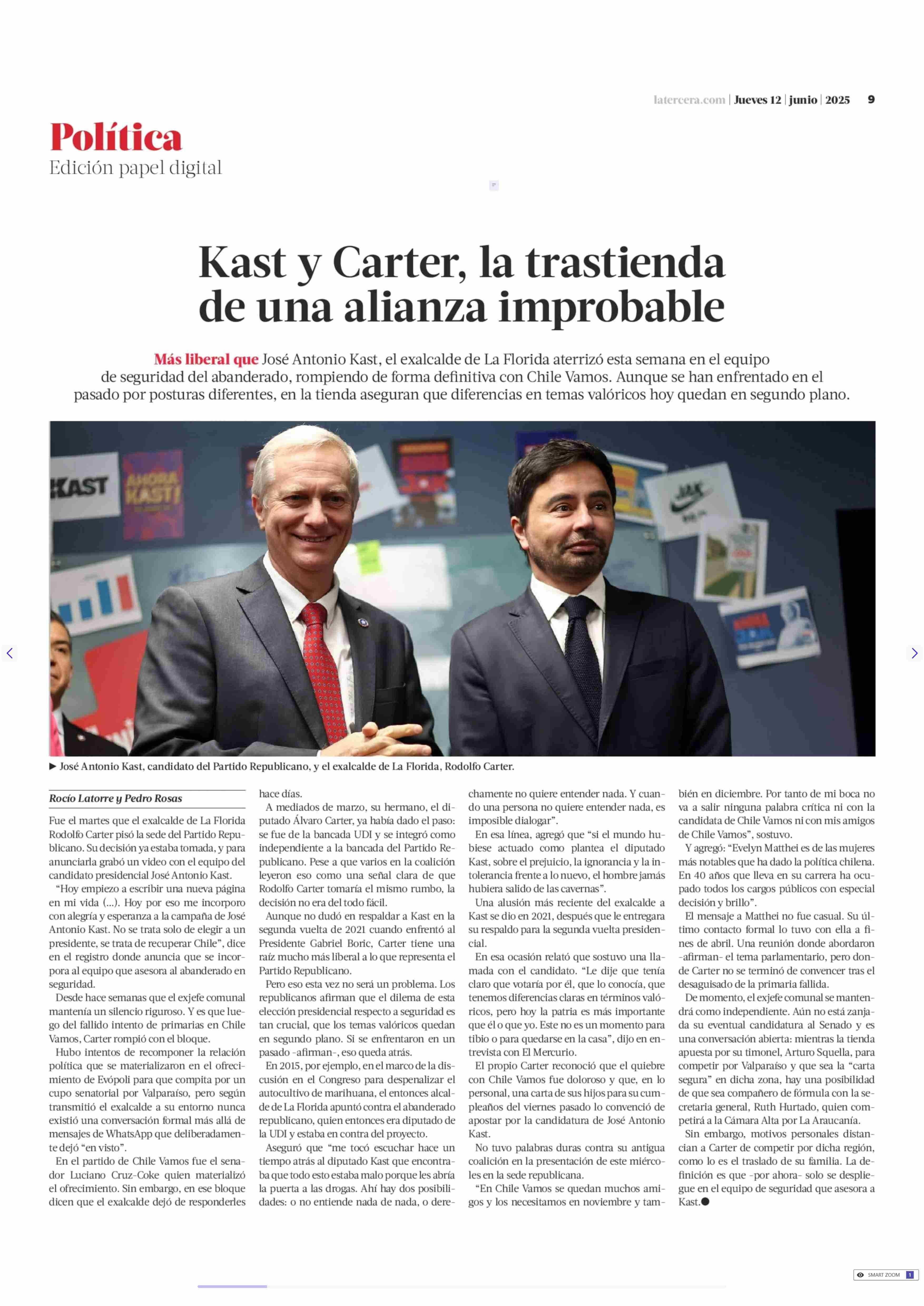 Kast y Carter, la trastienda de una alianza improbable 12-06-2025 La Tercera |