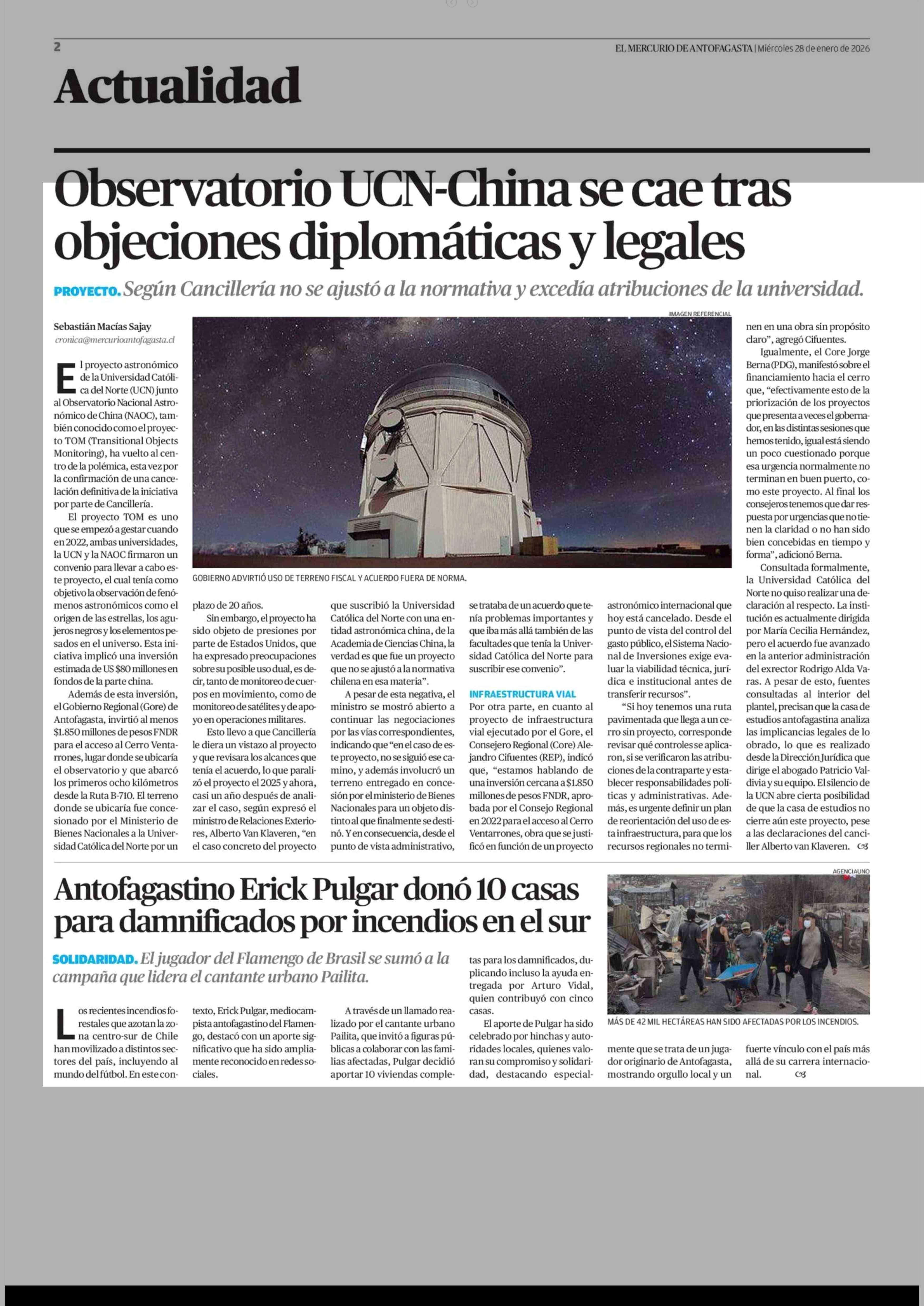 Fecha: 28-01-2026 Sector: Noticia general Región: Región de Antofagasta