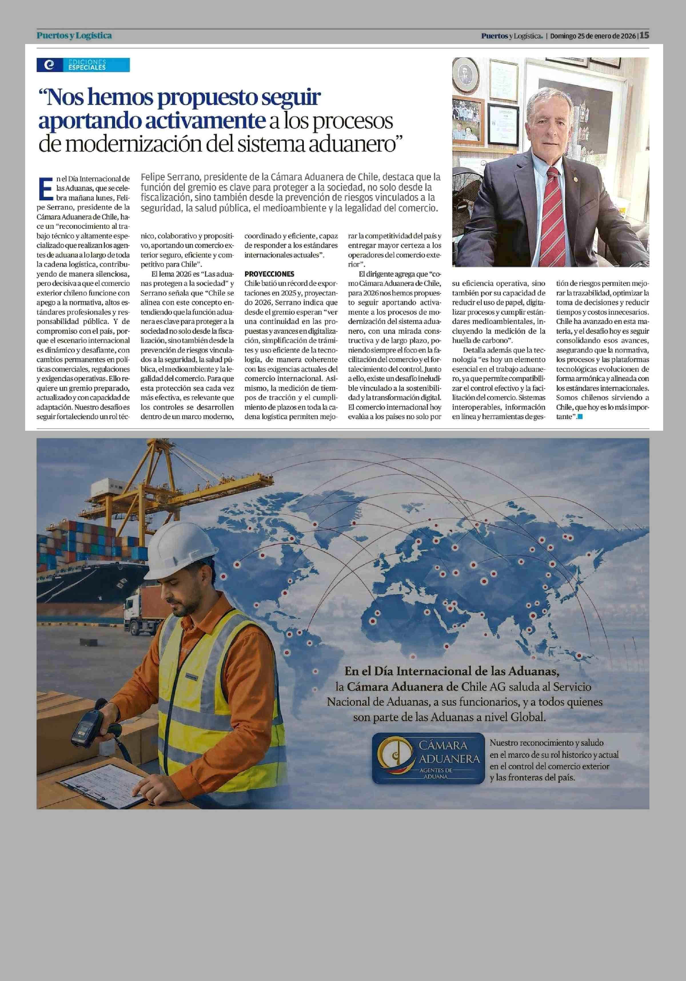 "Nos hemos propuesto seguir aportando activamente a los procesos de modernización del sistema aduanero" 25-01-2026 El Mercurio de Valparaíso |