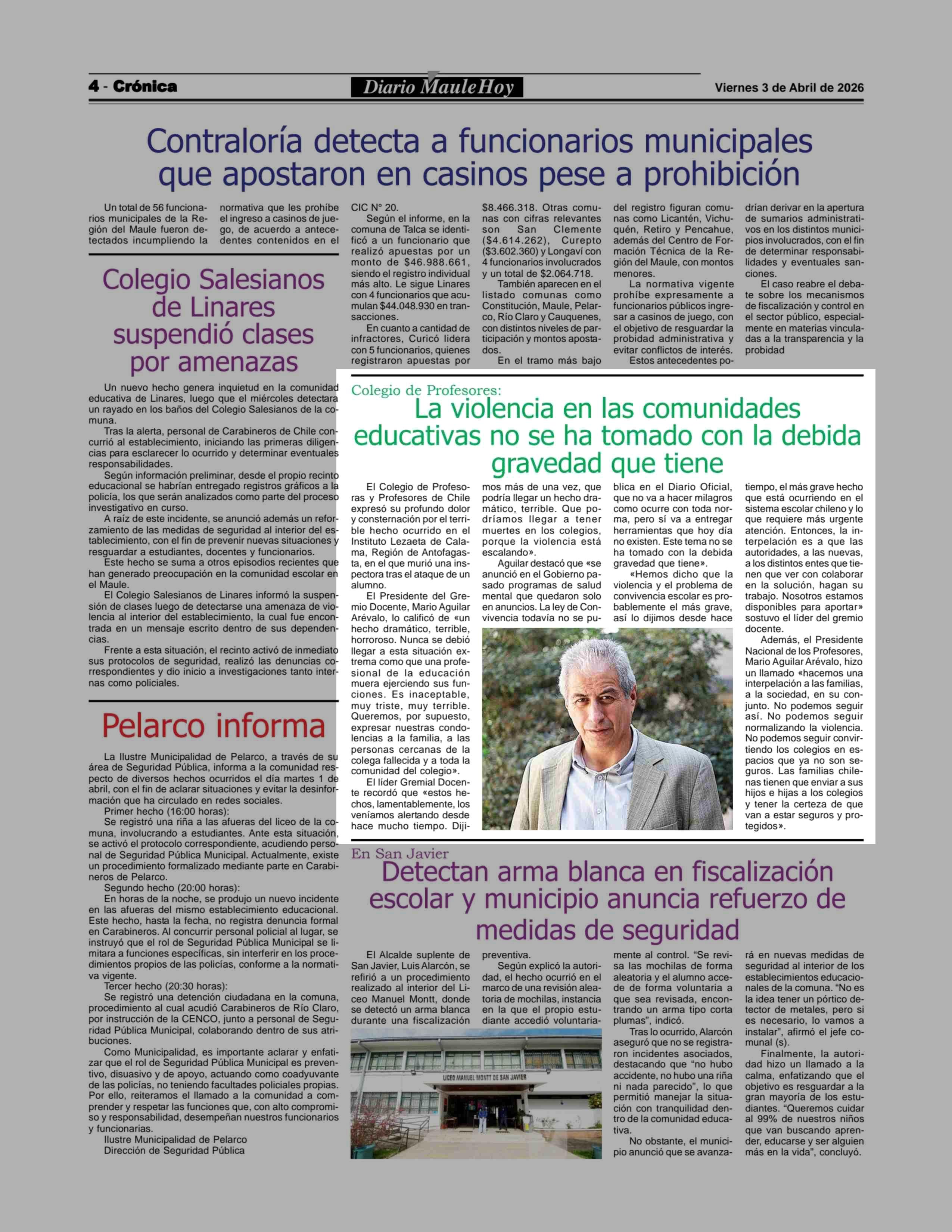 Fecha: 03-04-2026 Sector: Noticia general Región: Región del Maule