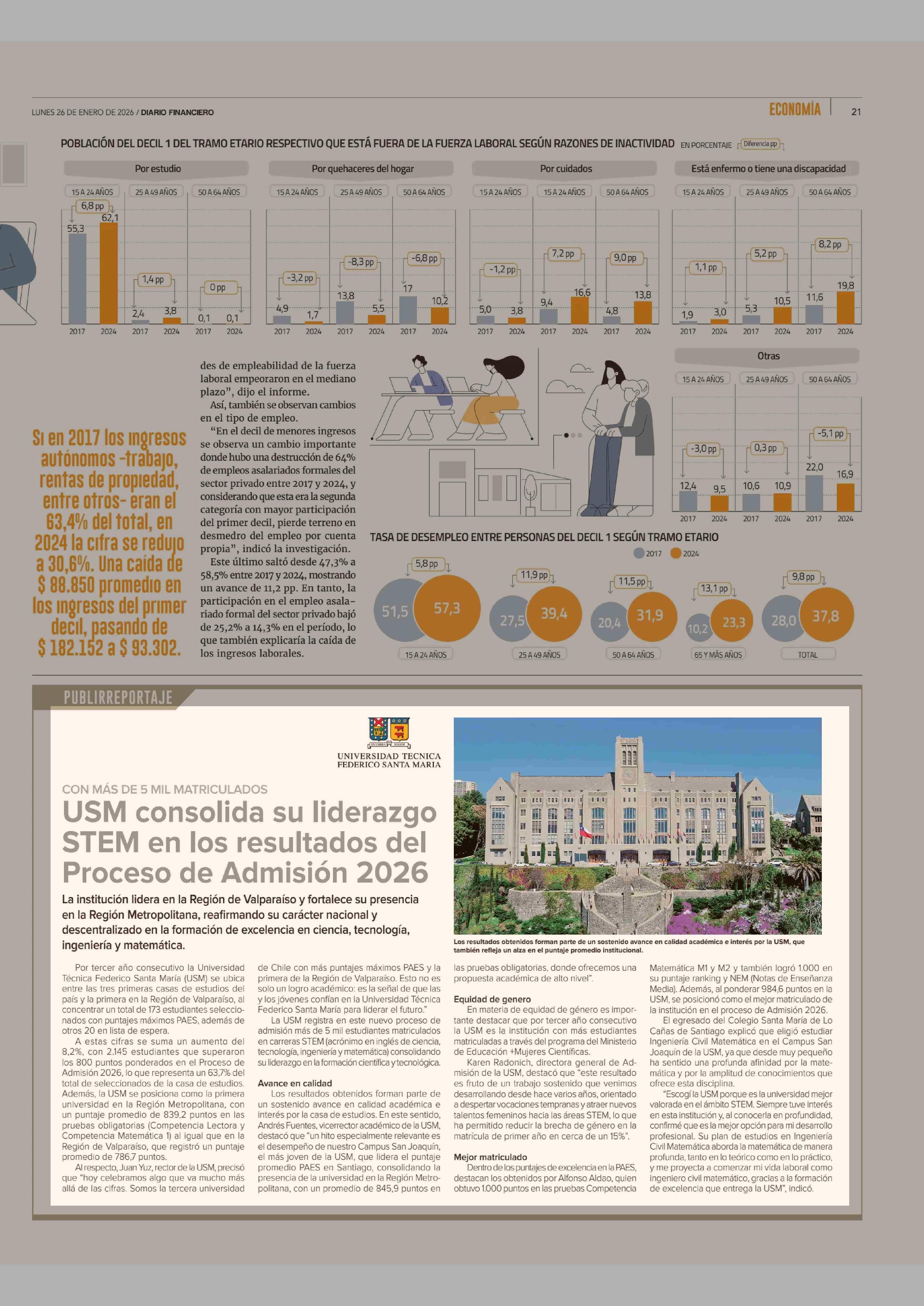 Título: USM consolida su liderazgo STEM en los resultados del Proceso de Admisión 2026