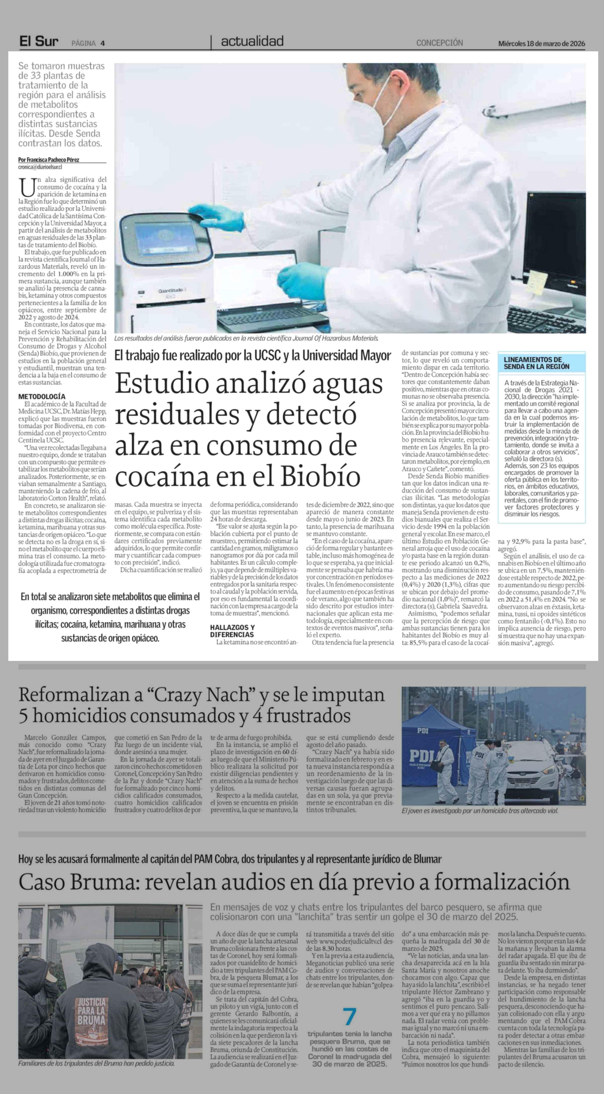 Título: Estudio analizó aguas residuales y detectó alza en consumo de cocaína en el Biobío