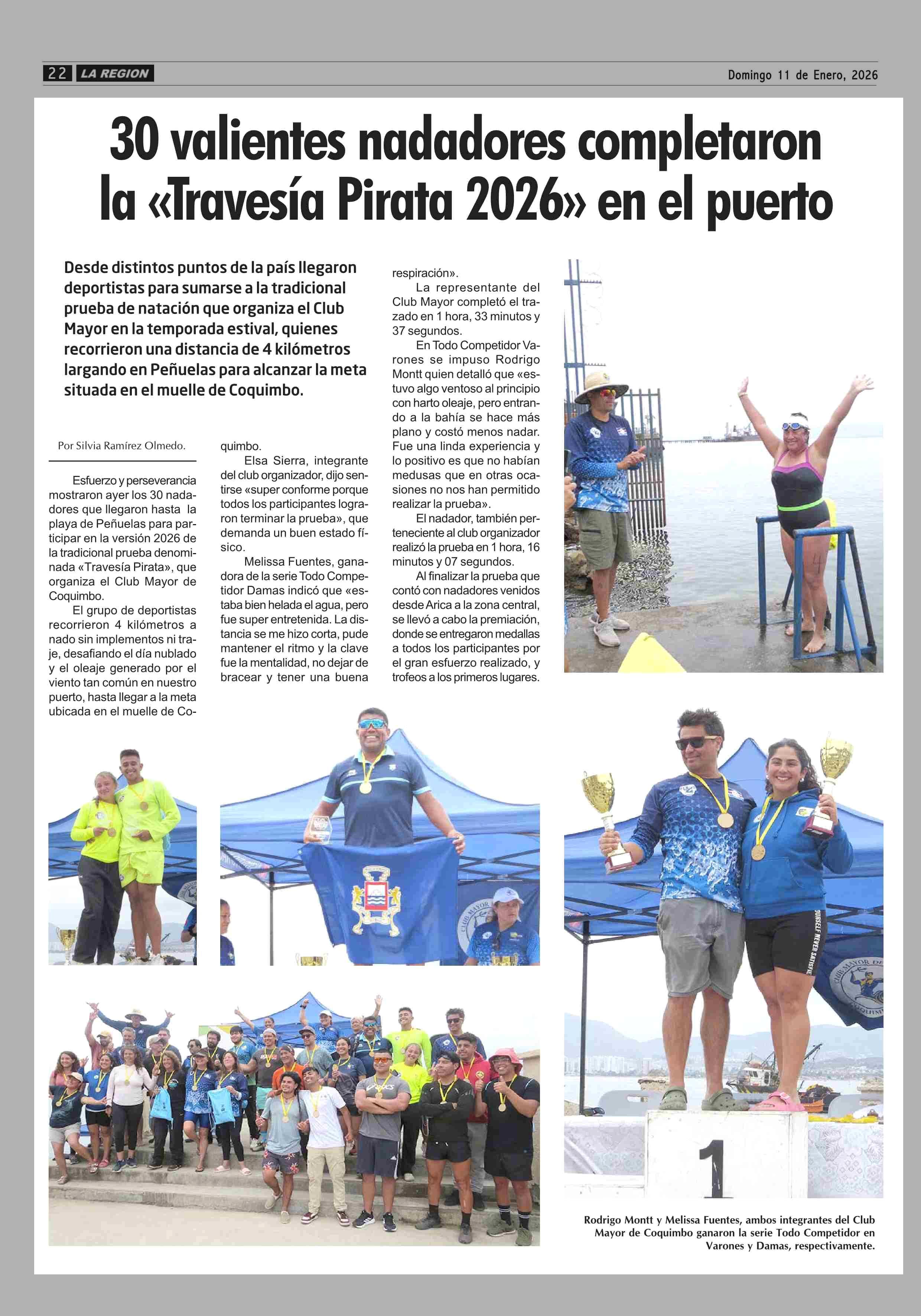 30 Valientes nadadores completaron la «Travesía Pirata 2026» en el puerto 11-01-2026 Diario la Región |