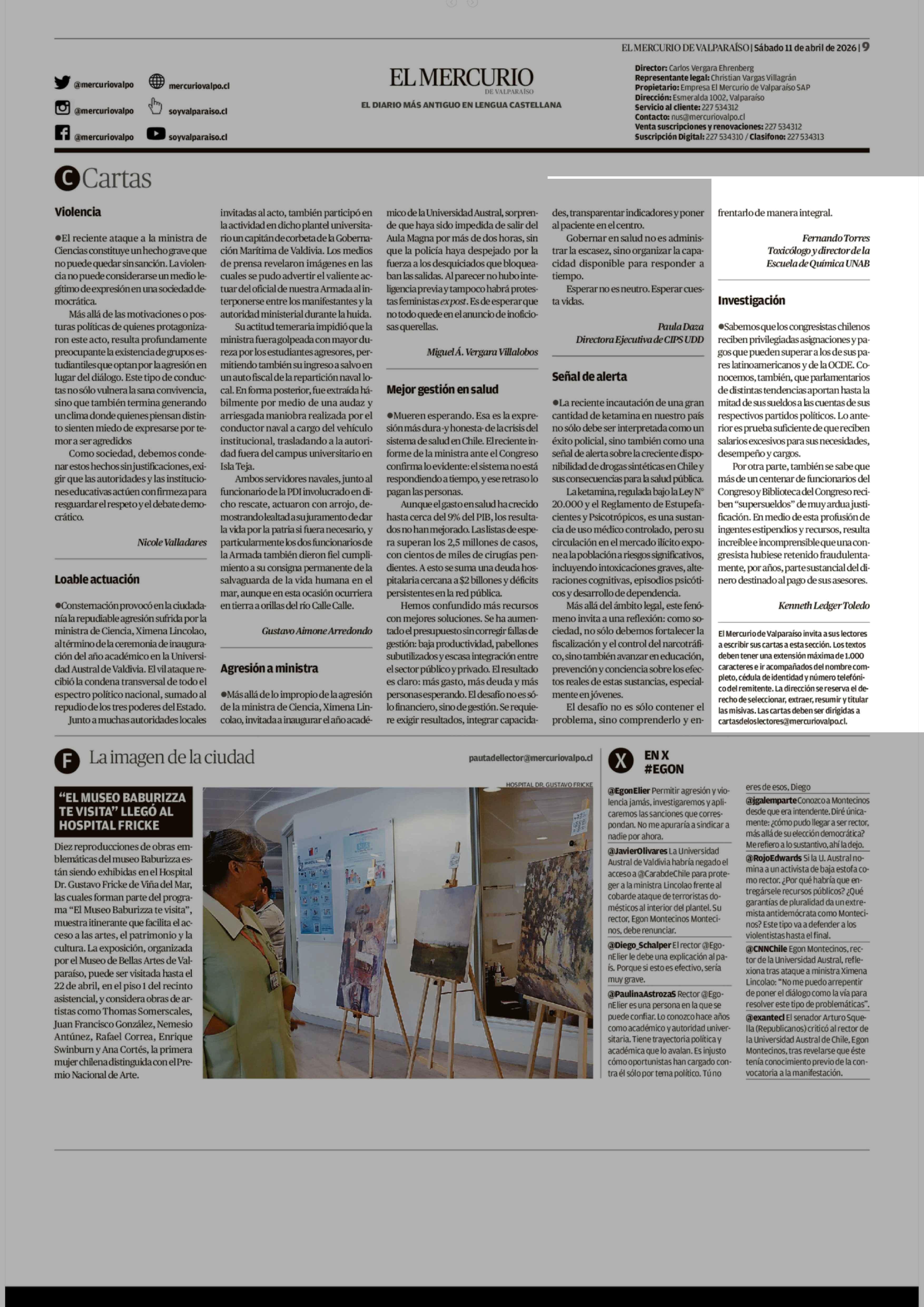 CARTAS: señal de alerta 11-04-2026 El Mercurio de Valparaíso |