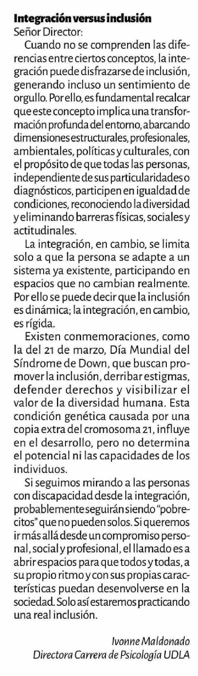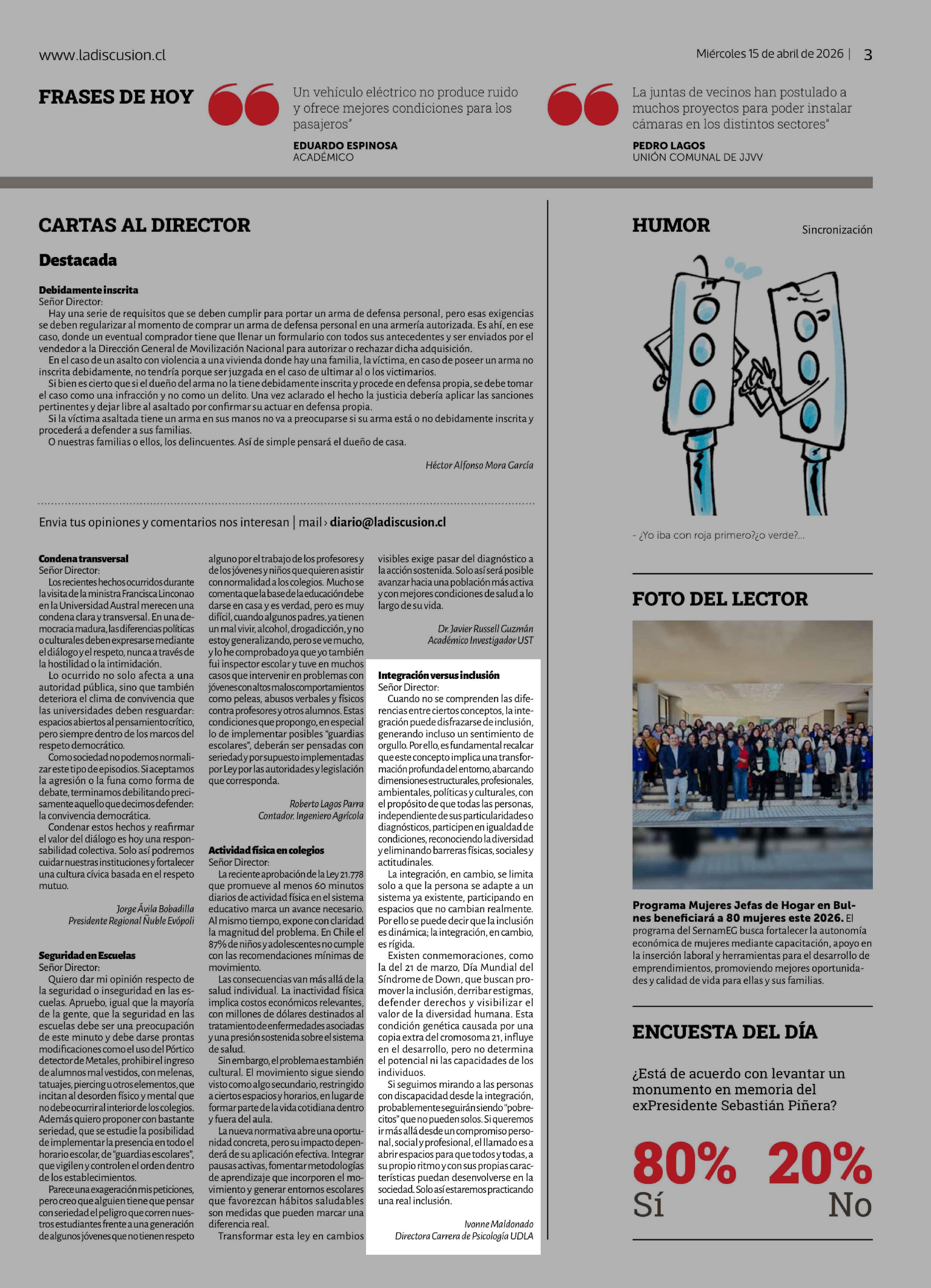 CARTAS: Integración versus inclusión 15-04-2026 La Discusión |