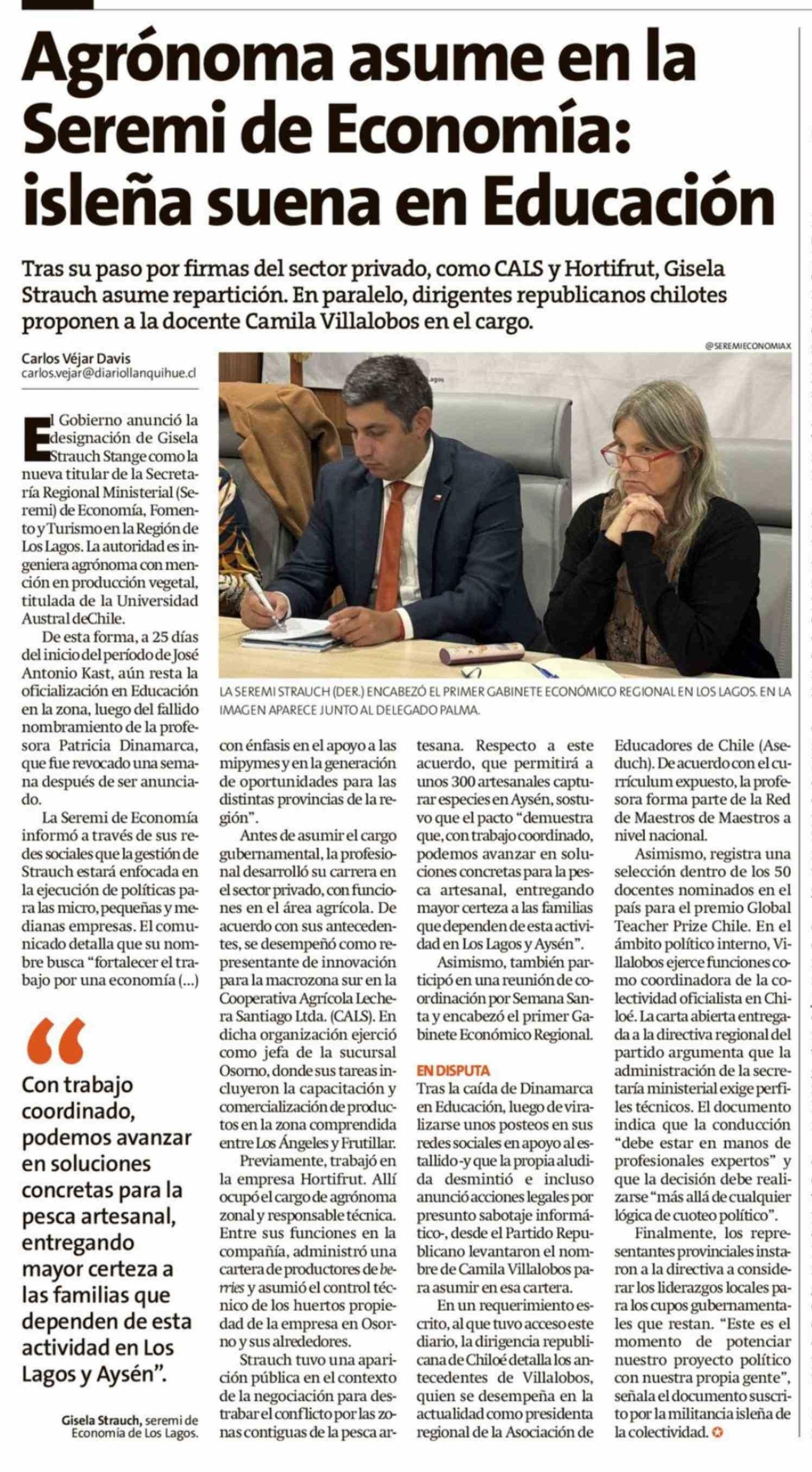 Título: Agrónoma asume en la Seremi de Economía: isleña suena en Educación