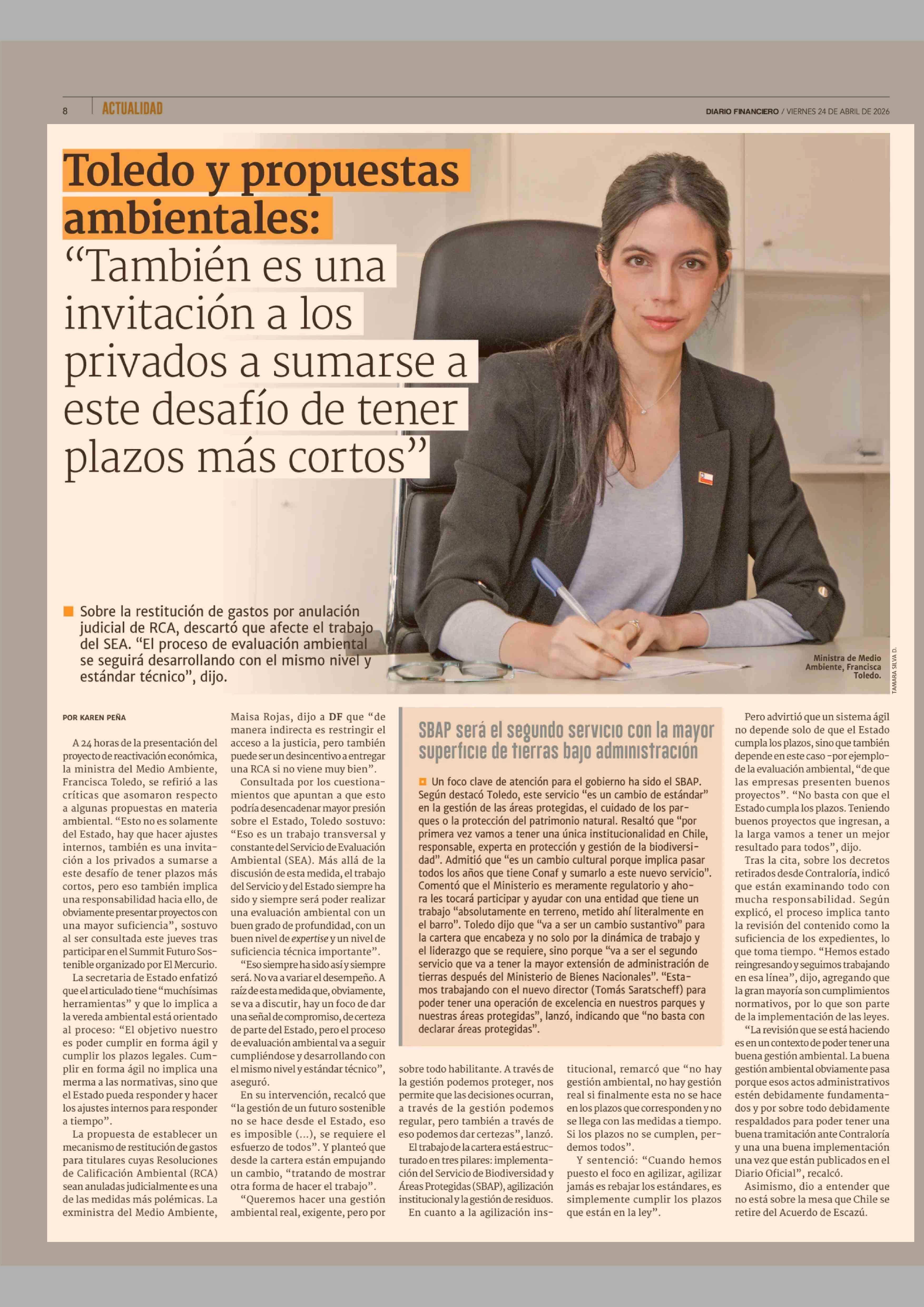 Título: Toledo y propuestas ambientales: "También es una invitación a los privados a sumarse a este desafío de tener plazos más cortos"
